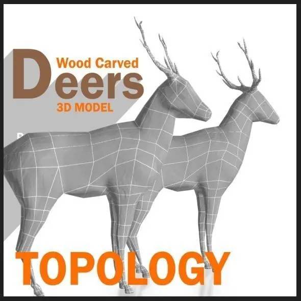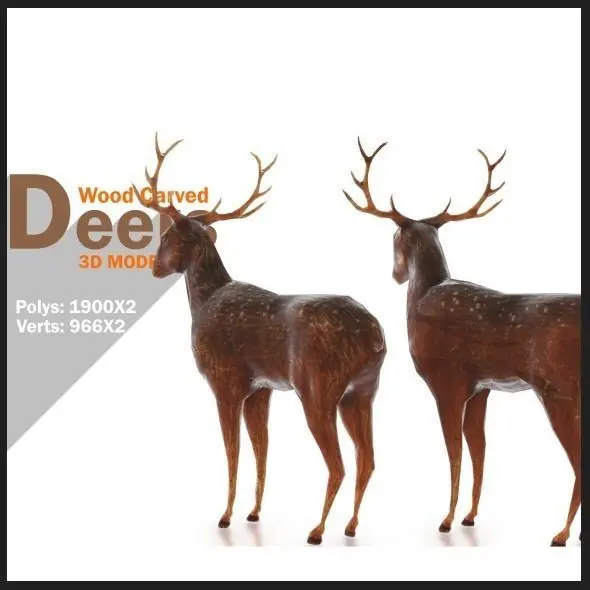 Wood Carved Deers. Low poly model created in 3Ds Max.Textures: Diffuse, Normal, Glossiness, Metallnes