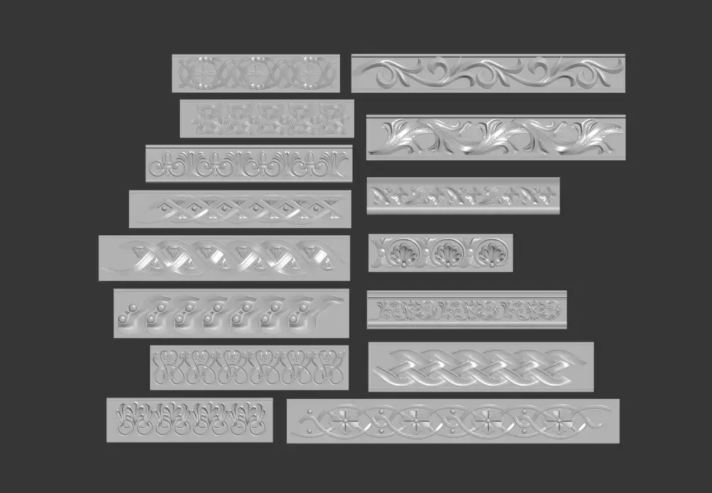 This is a set of solid wood relief decorative mouldings that blend European classical and traditional Chinese patterns, presenting rich visual layers.The patterns are diverse: including scrollwork, interlocking branch patterns, floral motifs, geometric braided patterns, symmetrical animal motifs, and classic meander patterns, with smooth and rhythmic lines.Craftsmanship features: Adopting three-dimensional relief craftsmanship, the textures are clear and full, with neat edges, combining both decorative appeal and artistic beauty. They are suitable for furniture edging, wall waistlines, door frame decorations, or classical architectural components.Style positioning: The overall style leans towards retro luxury, compatible with decorative styles such as European classical and New Chinese style, serving as a decorative element that enhances the delicacy of the space.