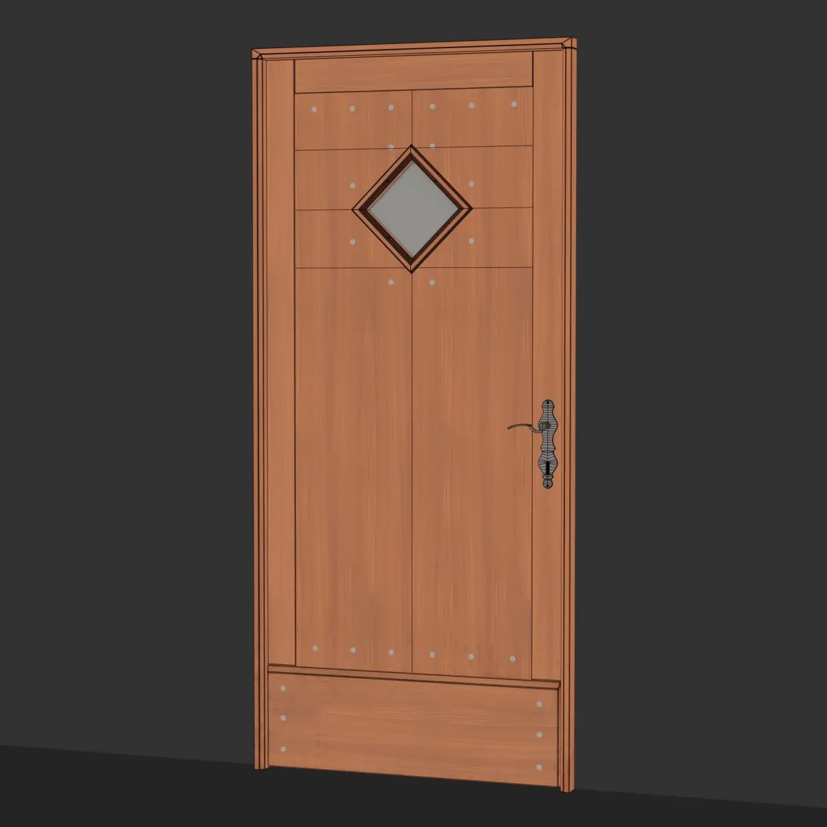 Larch Wood Door - glass window - steel handle and hinges - ornate steel nails