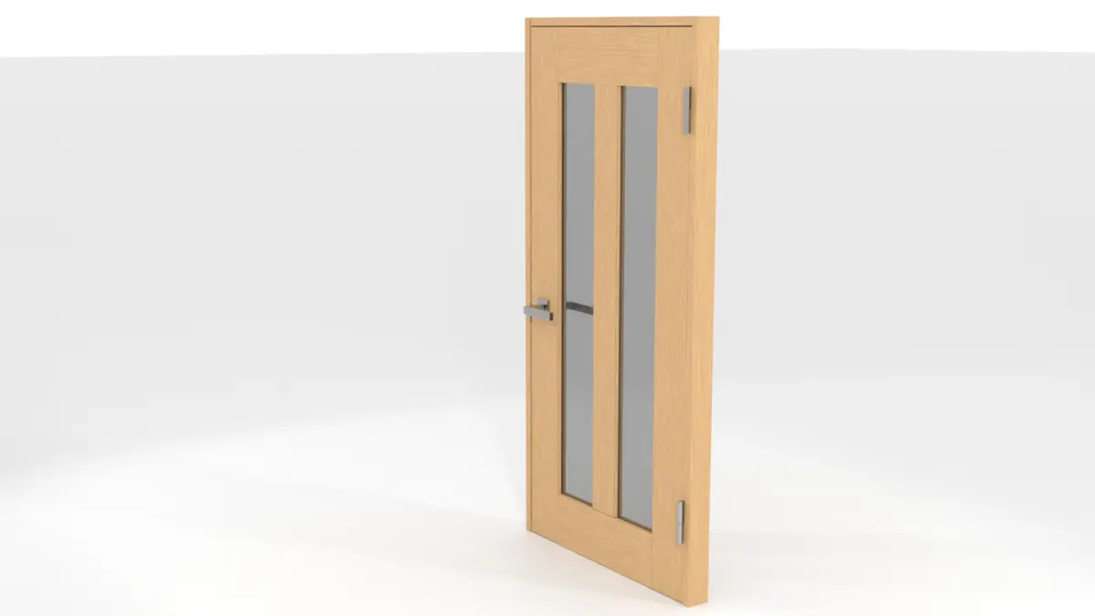 This door can be used as-is for low-poly models. The origin is set at the ground plane. A sub-origin labeled ASSY_MOVE is positioned at the rotation pivot point, allowing for easy opening and closing of the door. Units are in meters. Created with Blender 4.3.0, and preview images rendered with Cycles.