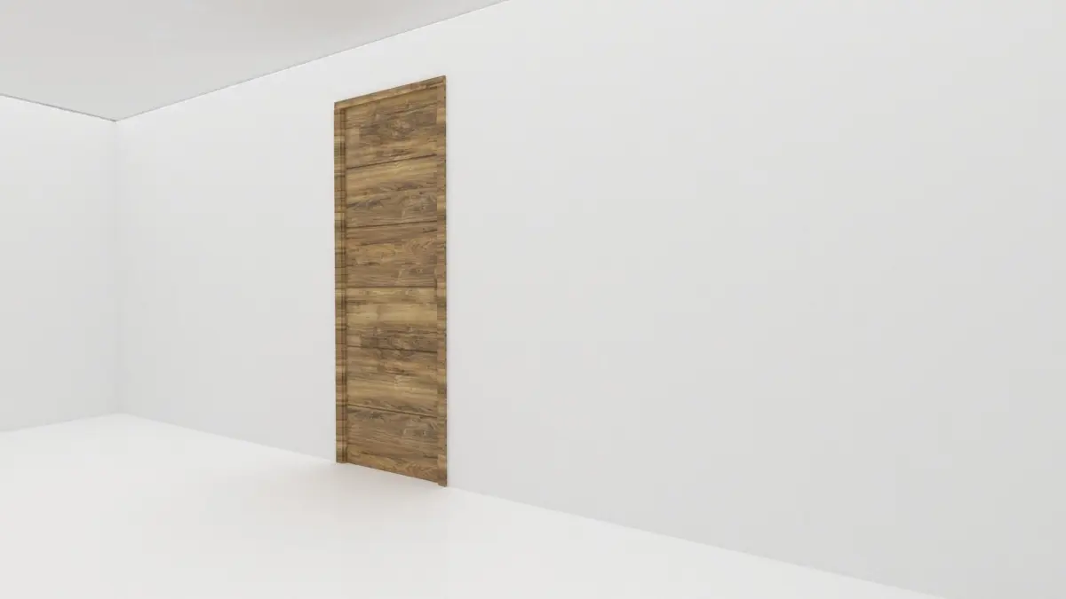 It's a modern wooden door with a handle, divided into 6 divisions by a small groove of 0.5 cm of width. This interior door could fit in a modern interior as in an industrial mood.