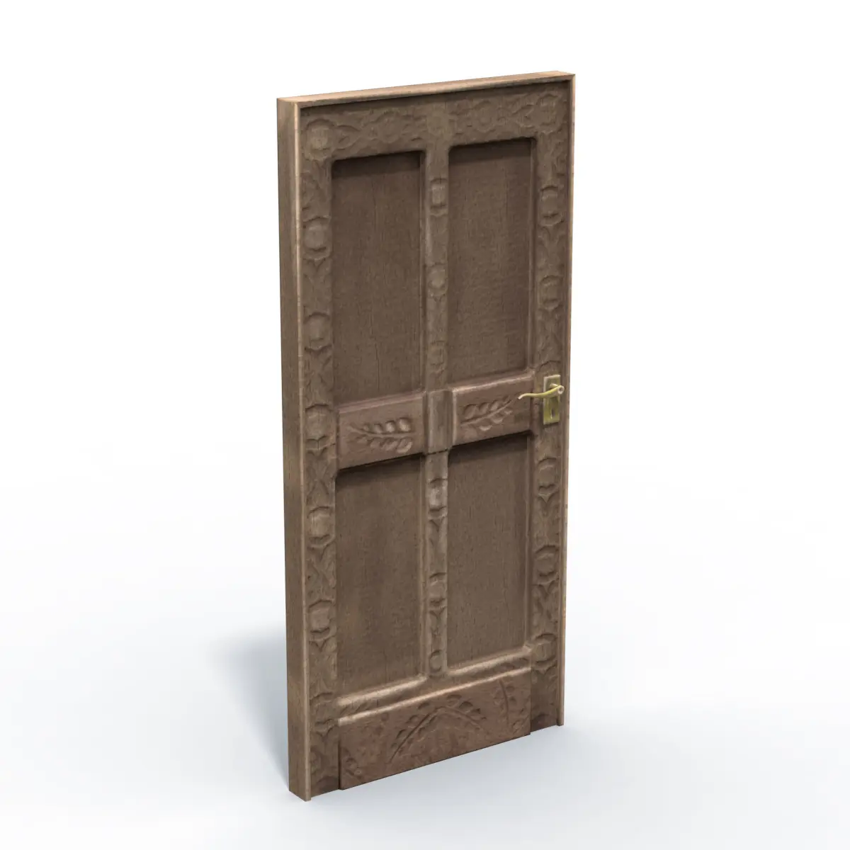 It is a model of the old carved door.Models is a set of 2 separated objects.The model includes 2 textures: -Door_Wood_01_color.png -Door_Wood_01_nmap.png