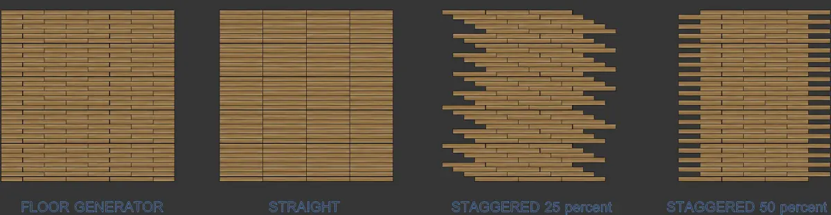 for your convinience we added different staggering planks so you dont need to worry about redesign the floor.(straight wood planks - 25% wood planks - 50% wood planks)We thought about everything!