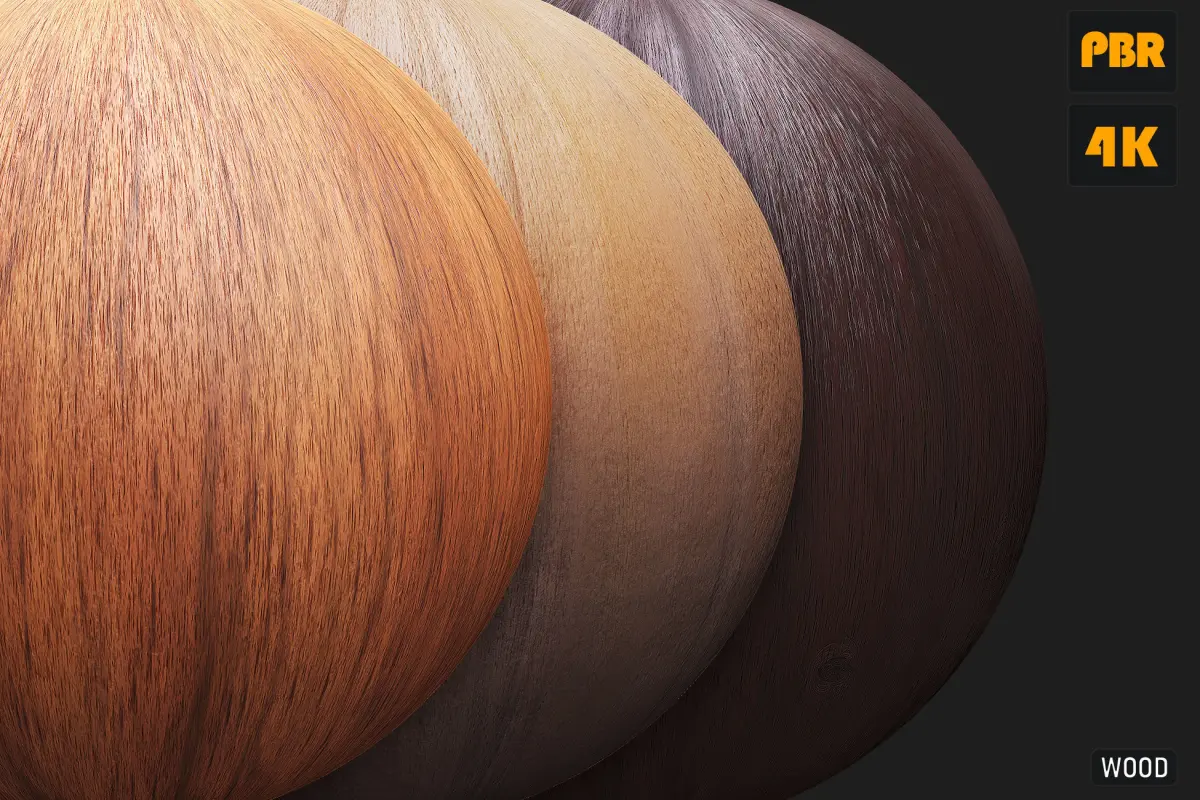 Thematic pack of materials for wood flooring with 4K textures, which includes four cards in twenty versions: