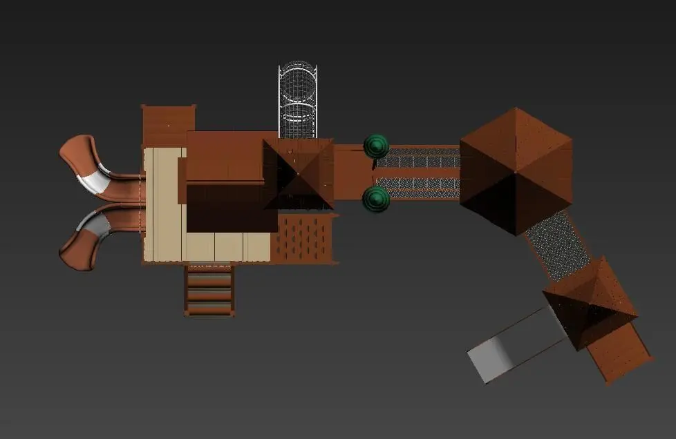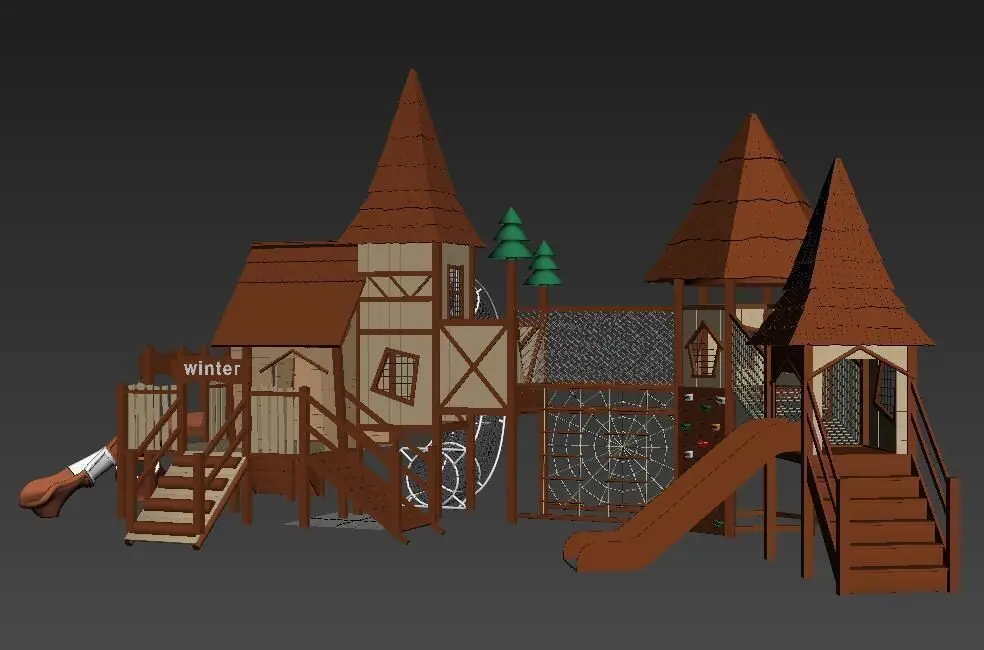 Forest town theme playground equipment have several houses for children to play.In the jungle house combins several types climbing,climbing net,climbing wall,and several slides for children play game.This is popular for theme park,big kindergarten , culture and travel center and ect.