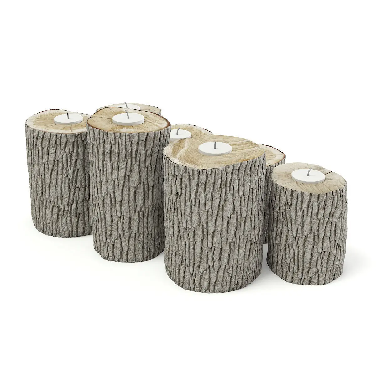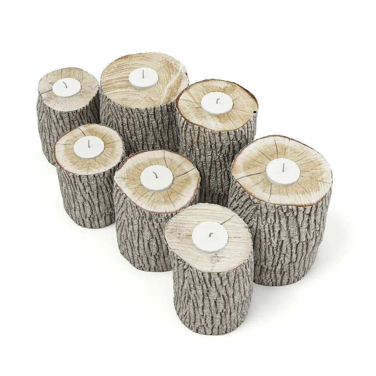 Seven wood logs candlesticks 3d model. Compatible with 3ds max 2010 (V-Ray, Mental Ray, Corona) or higher, Cinema 4D R15 (V-Ray, Advanced Renderer), FBX, OBJ and Unreal Engine.