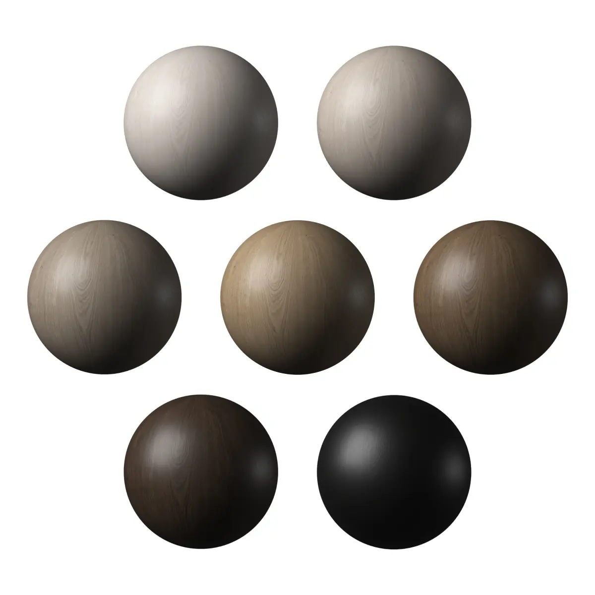 Wood material in 7 colors.Texture resolution is 16384x16384 pixels. Textures are seamless.The model has textures in only one color. All color decisions in the model are made through Color Correction in 3ds max.