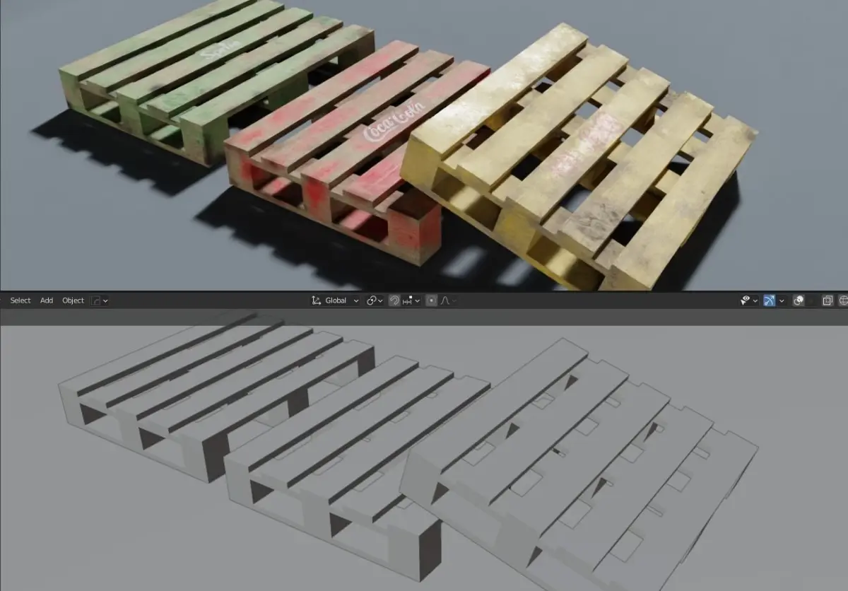 Each pallet is 204 triangles making it suitable for Games, Virtual Reality (VR) or Augemented Reality (AR).