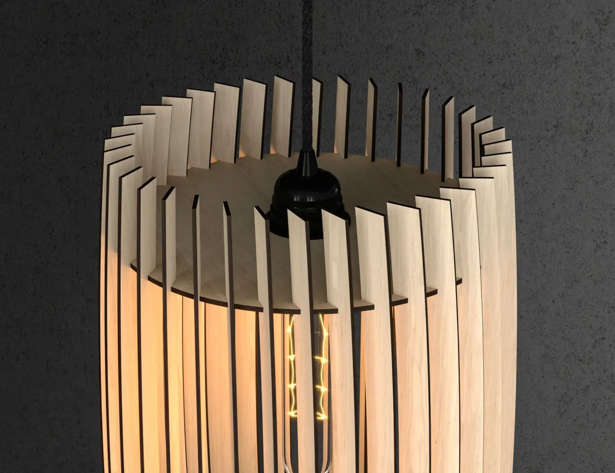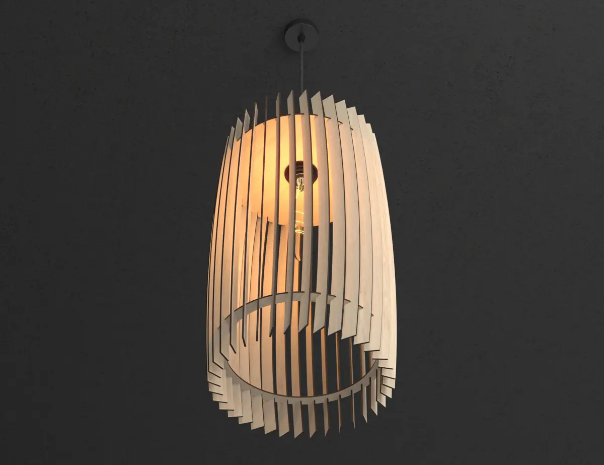 This lamp can be made by laser cutting machine. DWG Lasercut blueprint include. For 4 mm wood thickness.