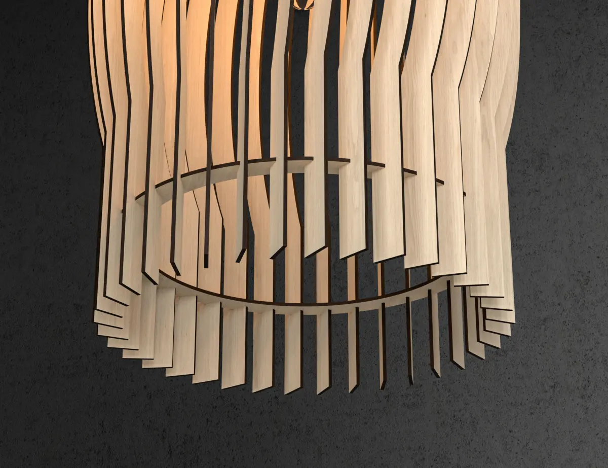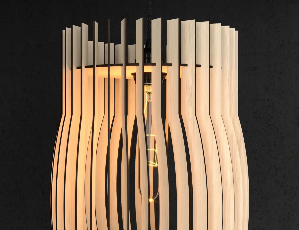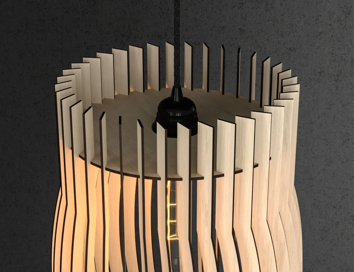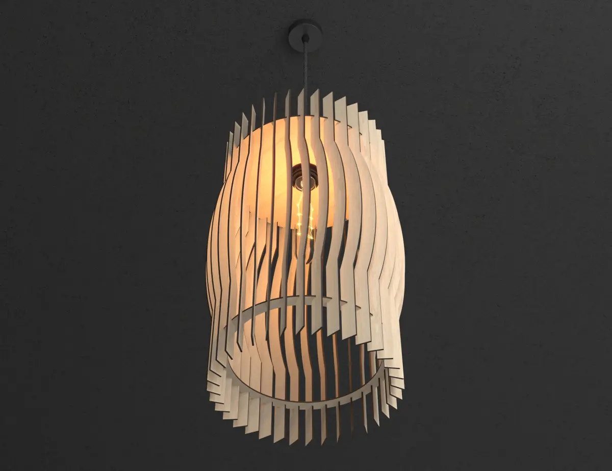 This lamp can be made by laser cutting machine. DWG Lasercut blueprint include. For 4 mm wood thickness.
