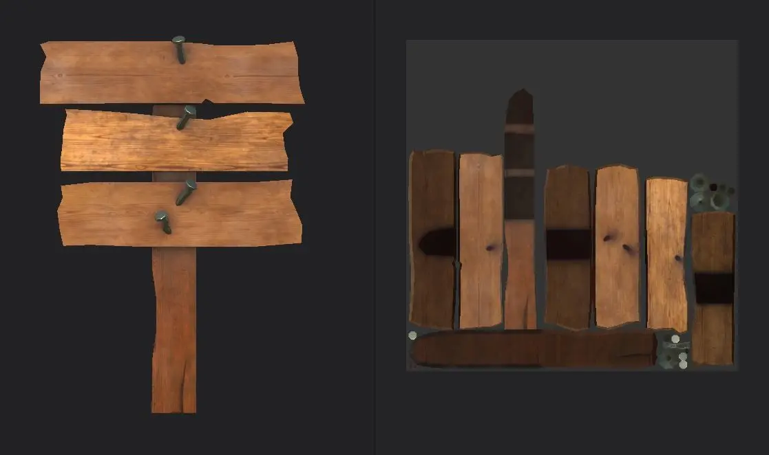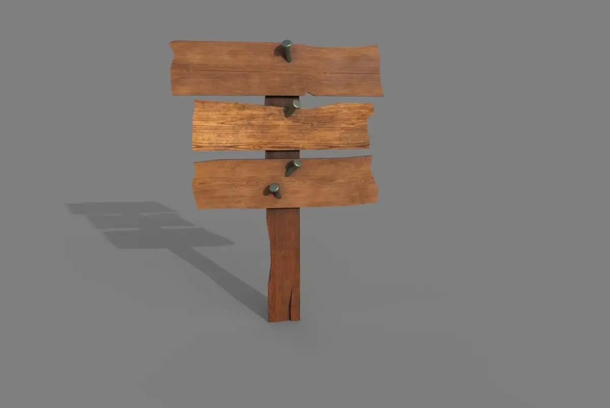 Wood sing low-poly game ready 3d model -3d model of wood sing specifically for game or cartoon film