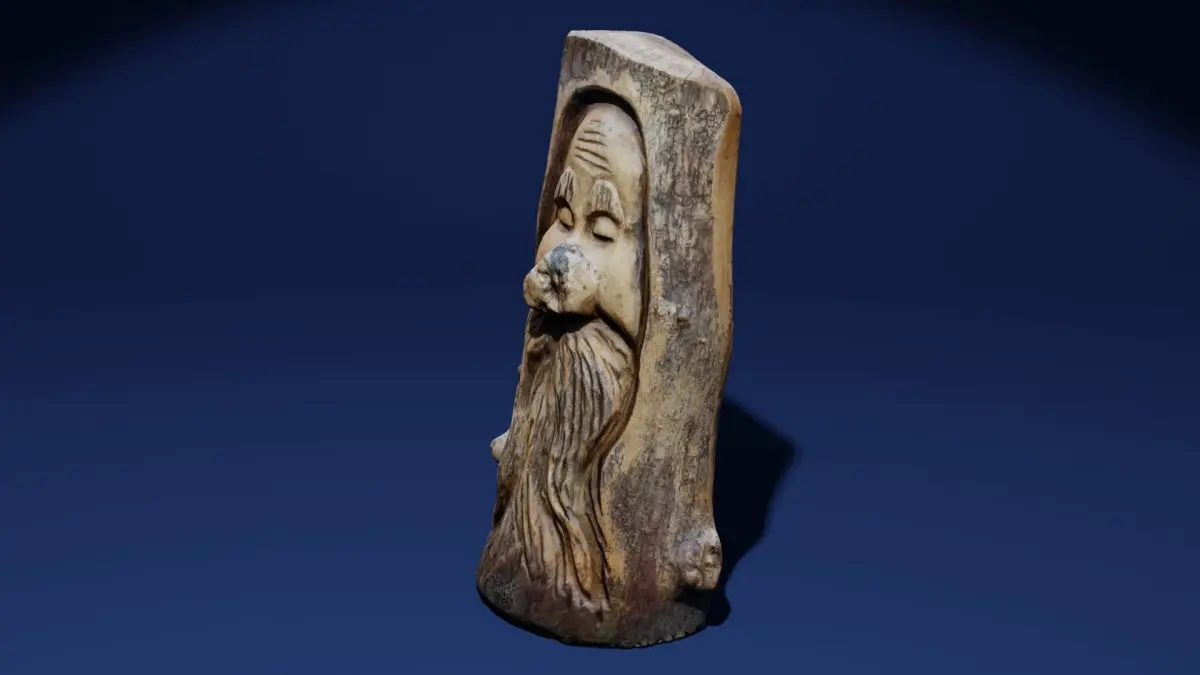 A 3D low poly photoscan of a greenman / woodspirit wood sculpture. Can be used as realistic set dressing in 3d scenes/games or could even be 3D printed. Comes in several different file formats including: blend, ply, stl, obj, FBX and glb. Rendered in cycles. There is a subdivision modifier applied to the model to make it smoother and more realistic but can be turned off to reduce render times.