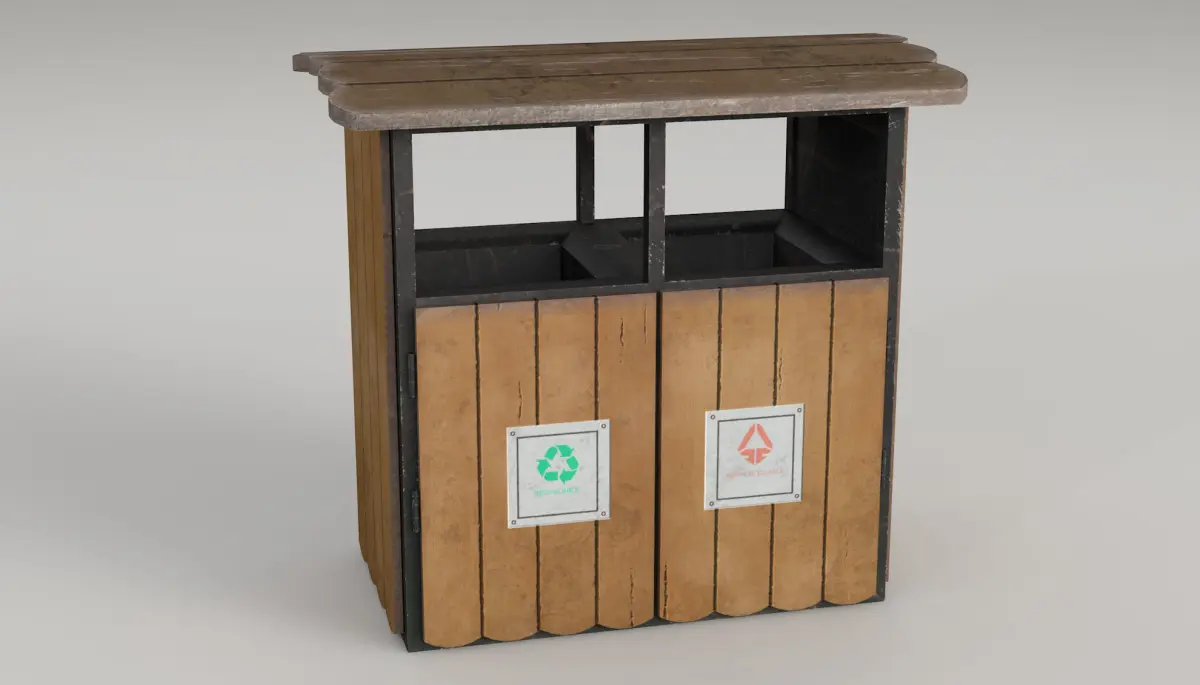 Recycling bins Low-poly 3D modelPBR, Game ready, low poly.