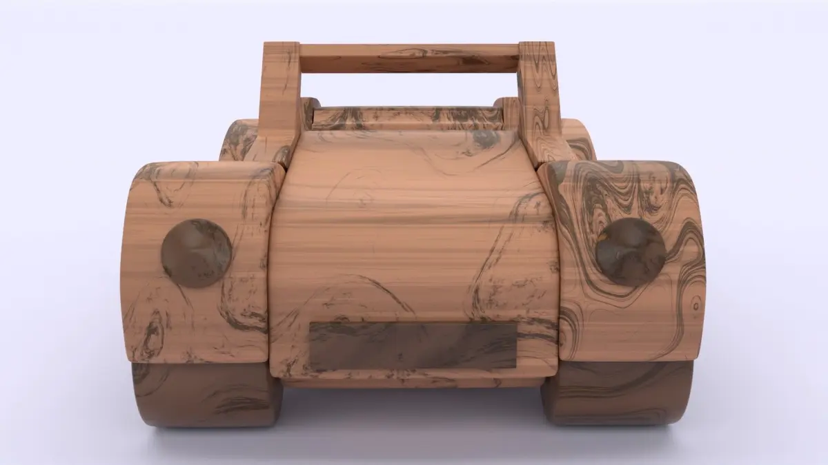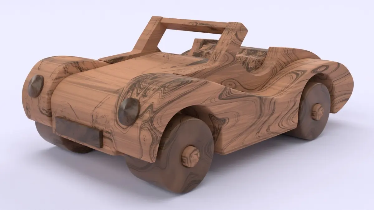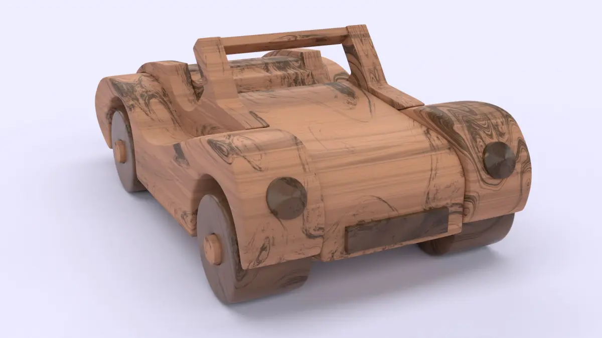 This is 3D model of the wooden car toy.