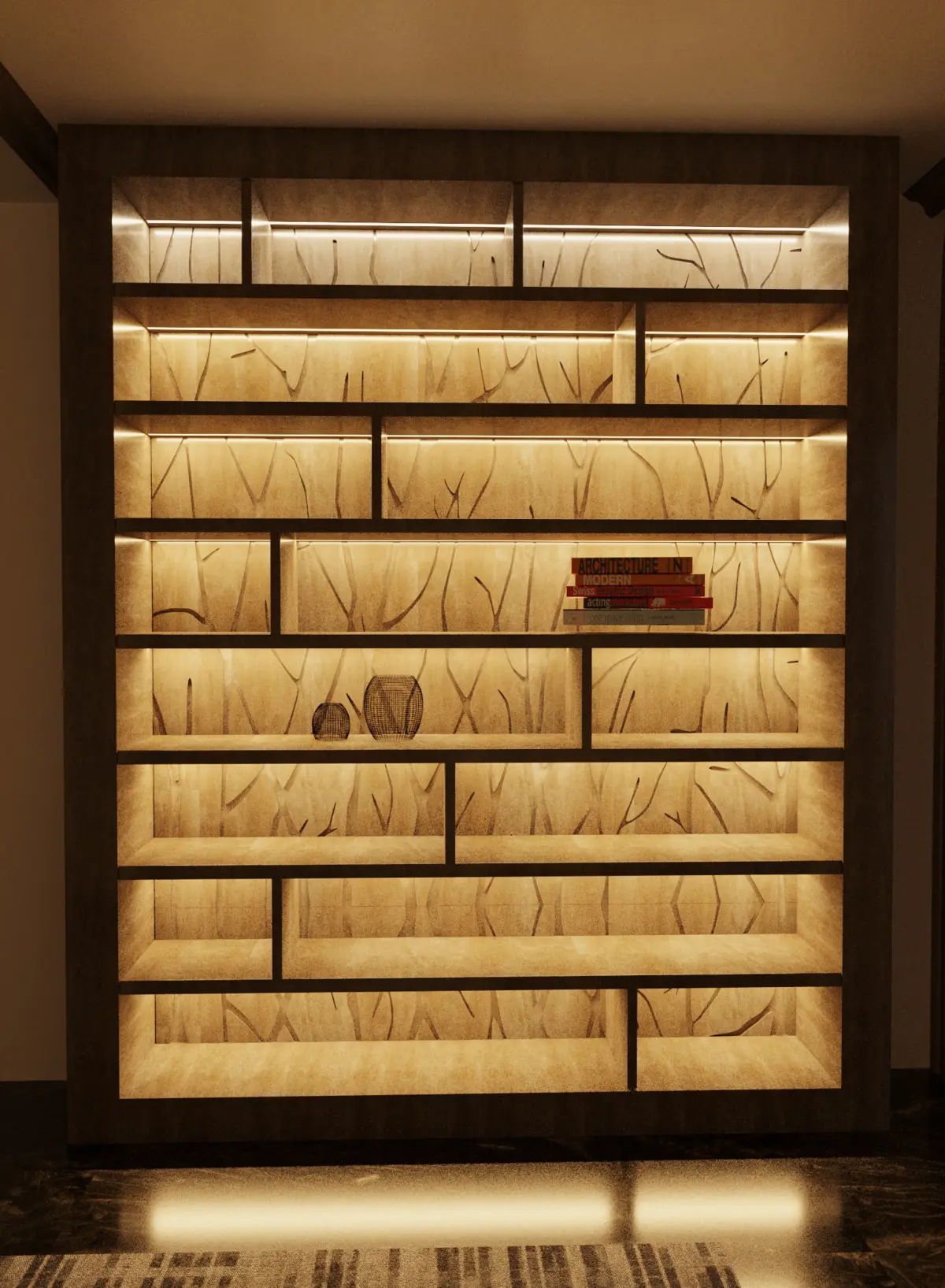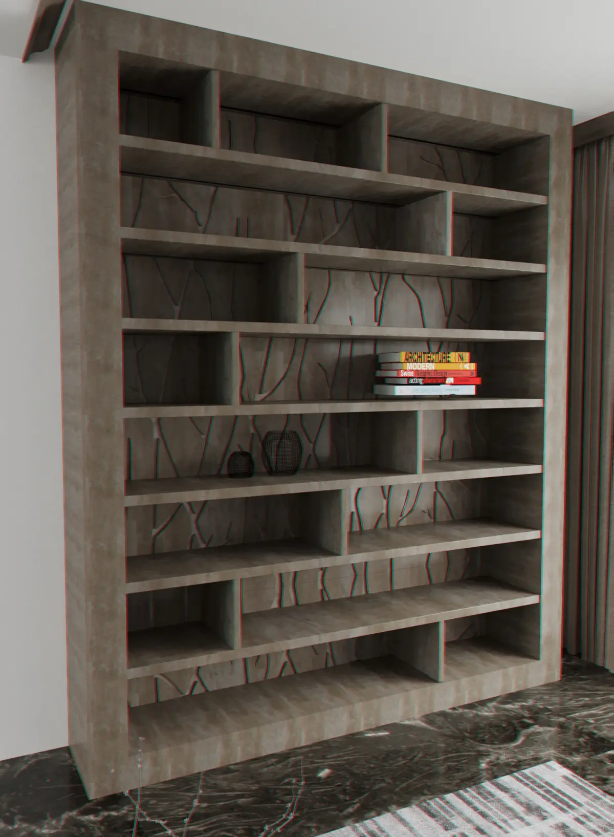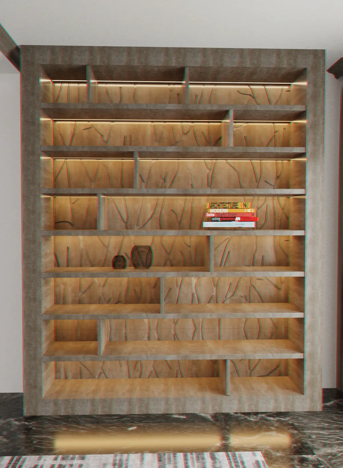 3ds max 2022, Corona renderer.Wood wall shelving unit as shown. without the flooring or curtain.materials and corona light are available. All in archived zip file.mtl, 3ds, obj. , fbx2450x455x3000mm