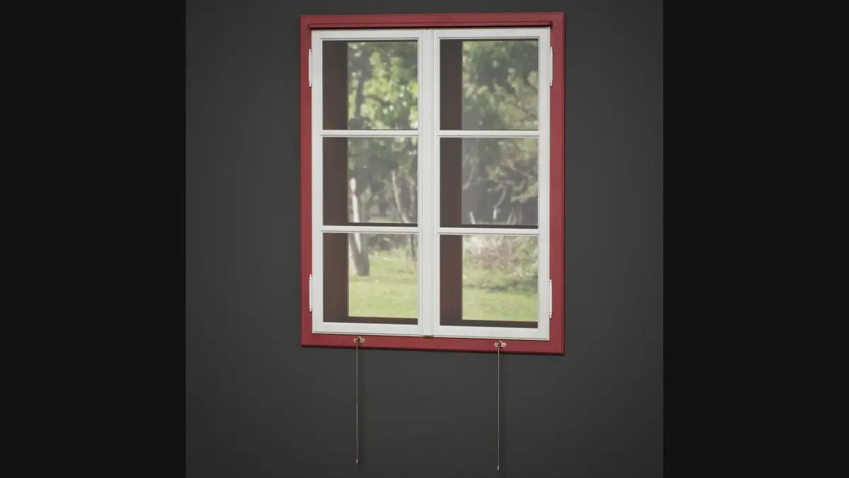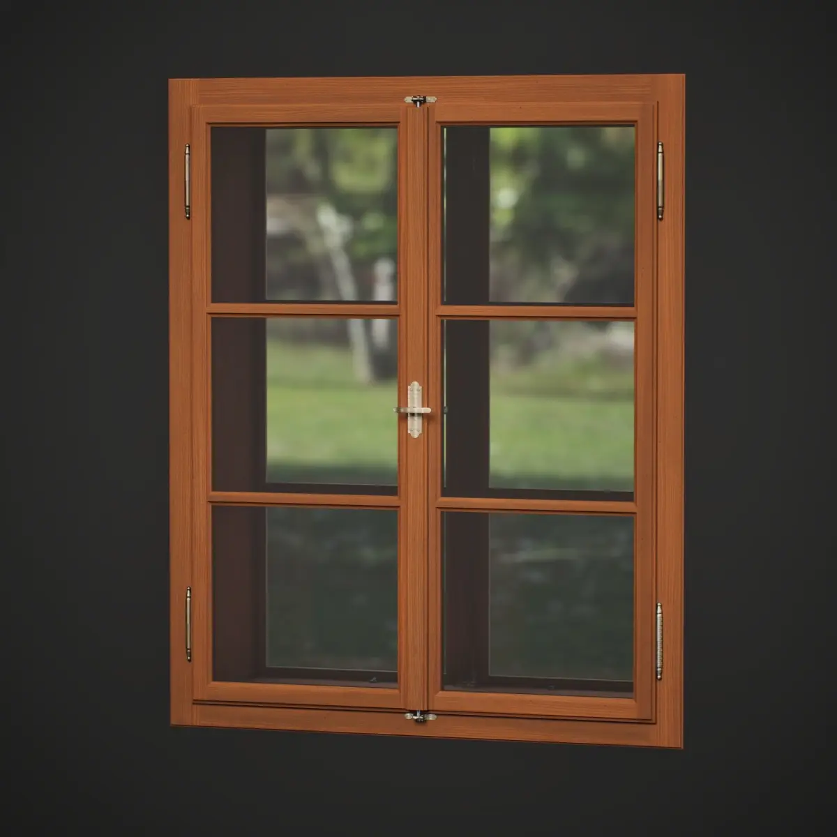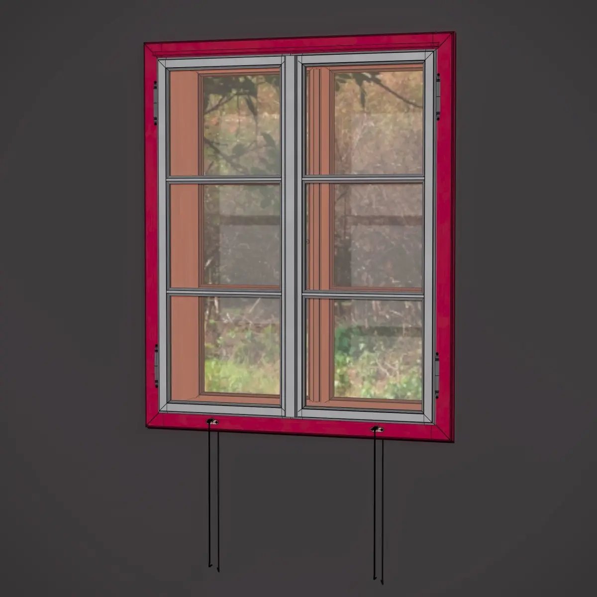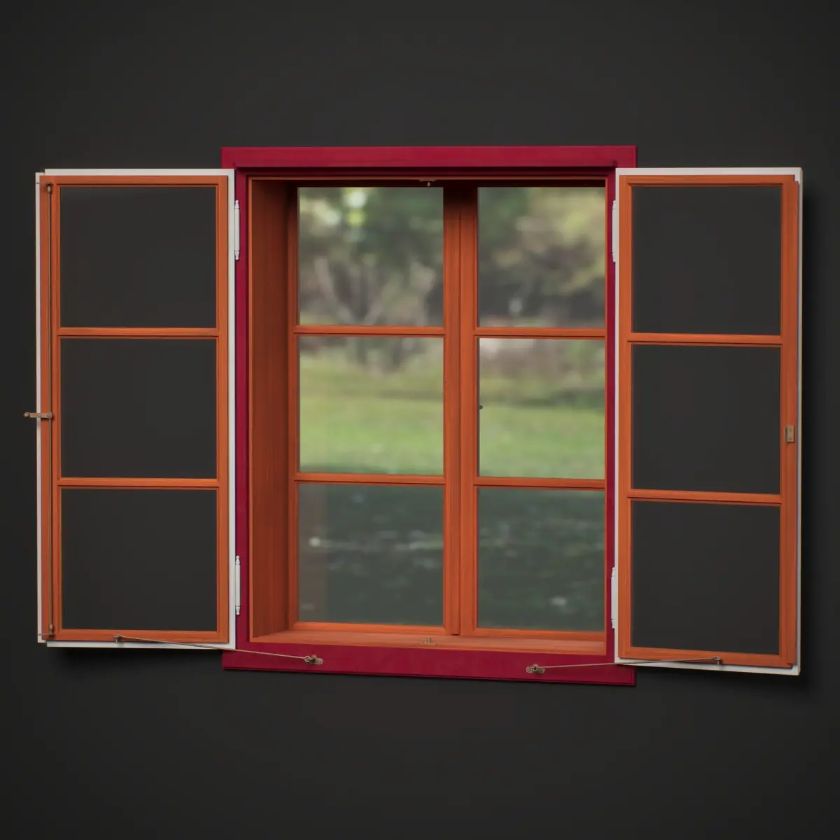 Wood Box Window - larch wood - outside painted - bronze handle hinges and closing mechanism - outer windows with single glazing, inner window with double glazing - 2 versions of albedo map