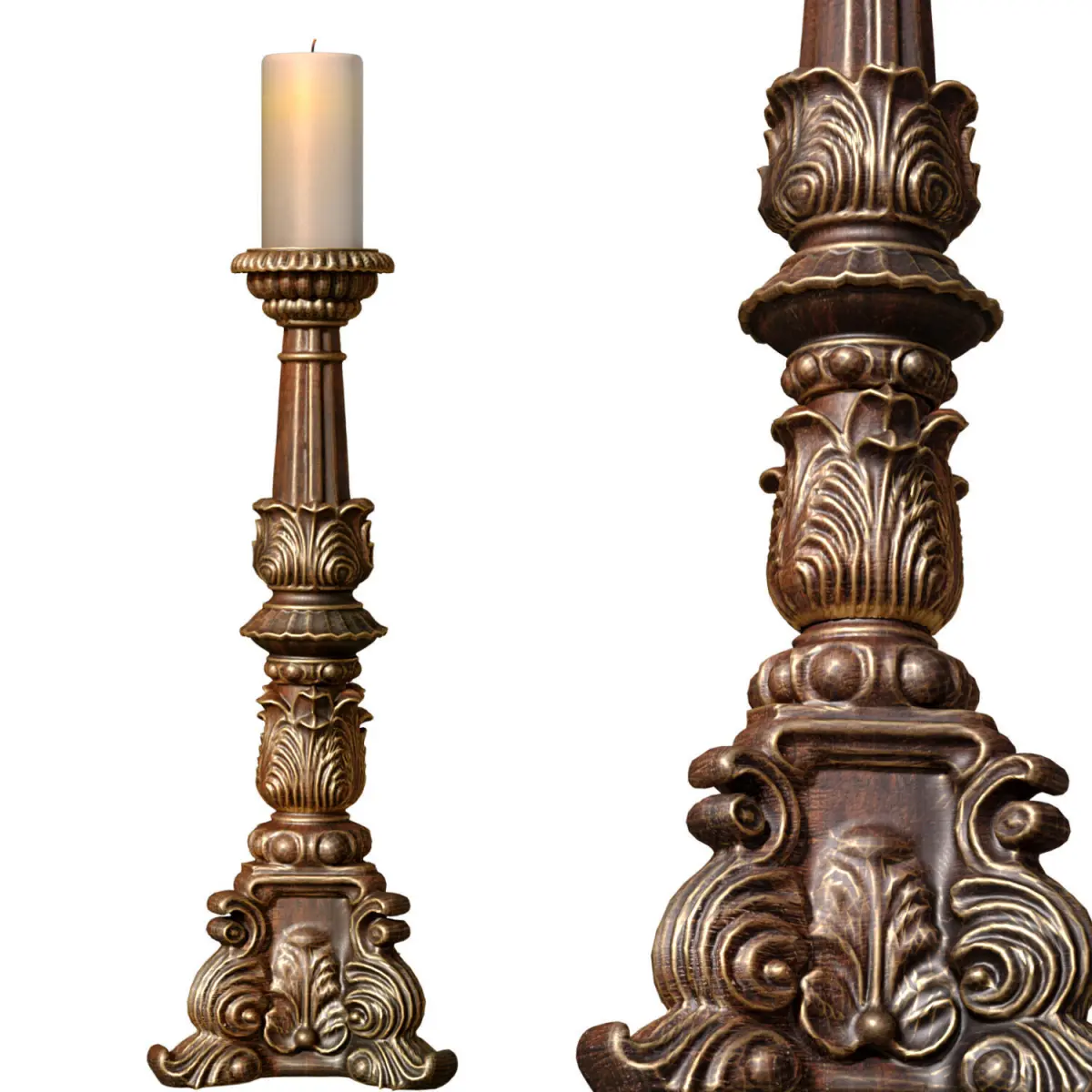 Decorative carved rustic candle holder with patinated gold in classic style for decorating living room, office, study, bedroom, bedside table in Classic style,wood candlestick classic Country,Western candlestick and Rustic candlestick Lighting,Desktop, designer, decorative, textured, embossed ,classic candle holder lamp,European Classic Style Candle Holder for Home Decoration, Bedroom Lighting,