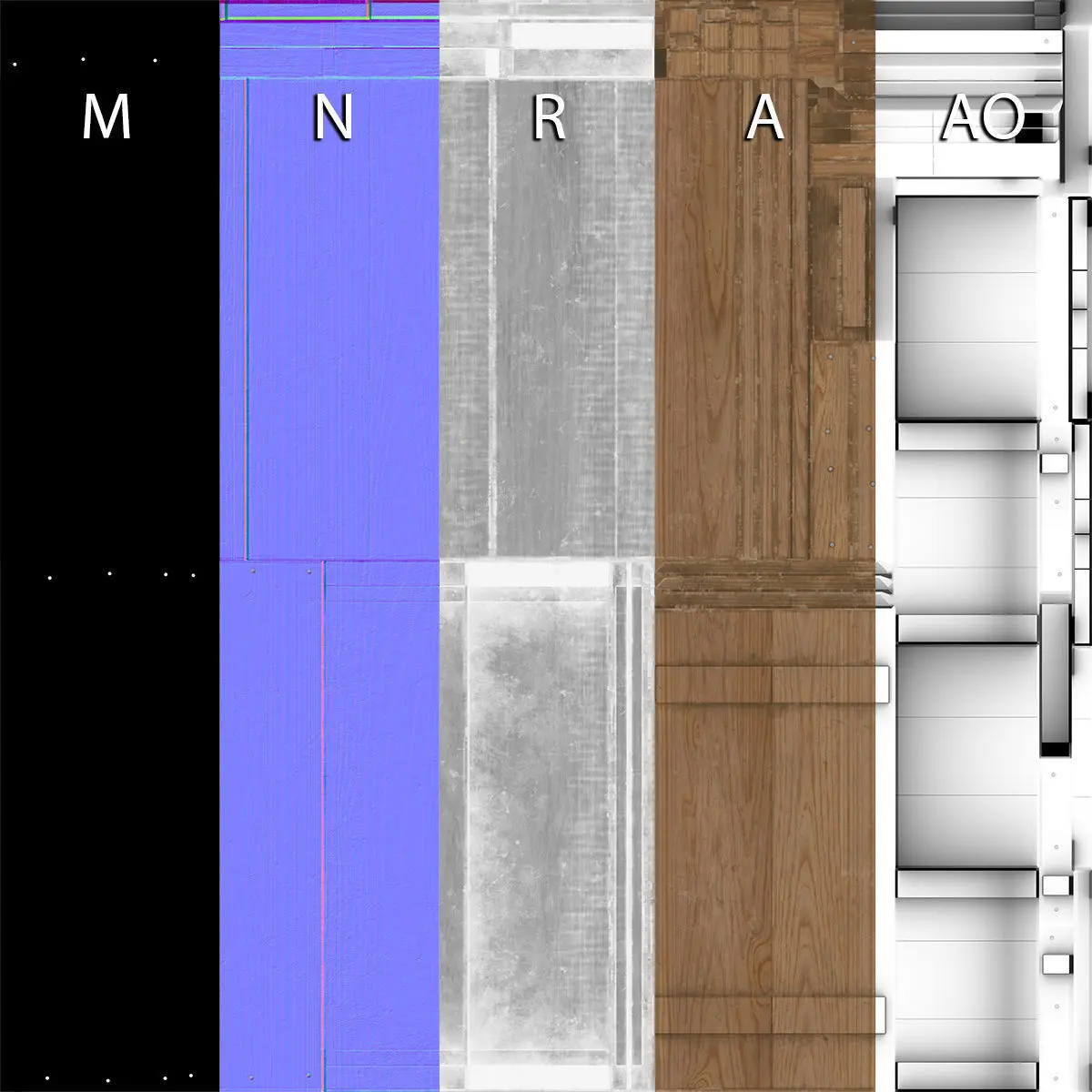 -Vray set (included scene with tuned VrayMat.): *Diffuse *Reflection *Glossiness *ior *Normal