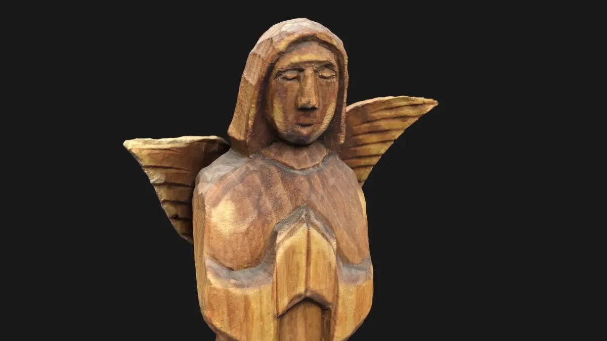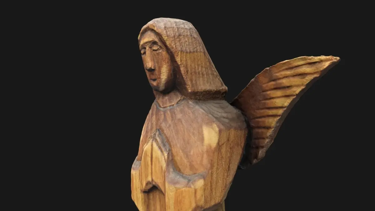 Sculpture of a wooden angel with a broken wing typical of Eastern European nations. Lowpoly model made from a scan of a real old sculpture.