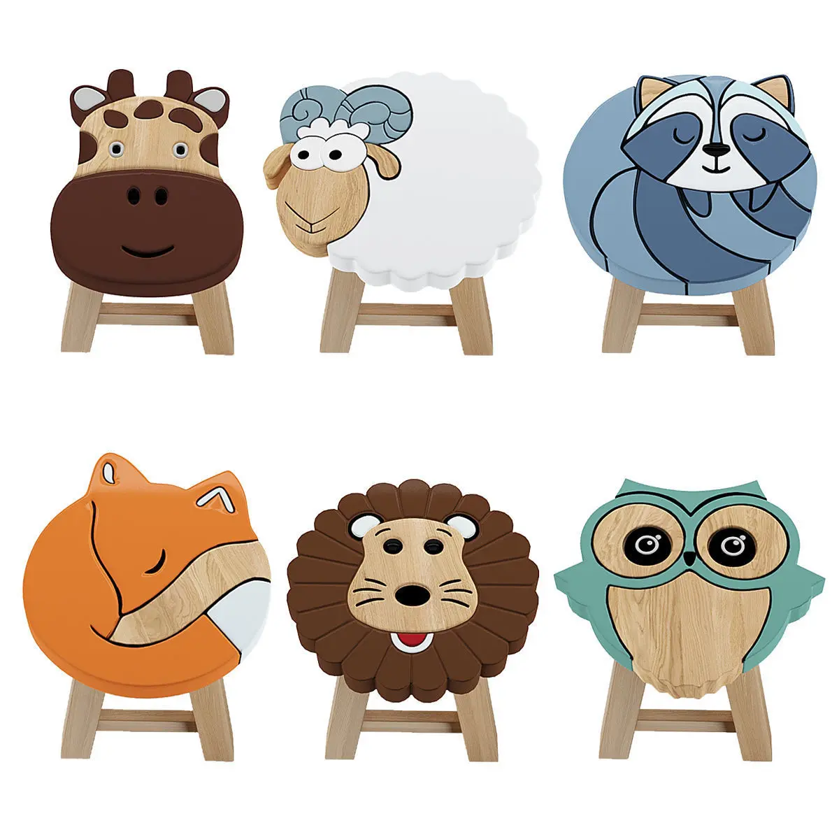 Name: wooden animal stoolkid bench and tableVersion: 2017Units: cmDimension: 42 cm x42 cm x 28 cmPolys: 300.764XForm : yesBox Trick: yesRender: Corona + vray