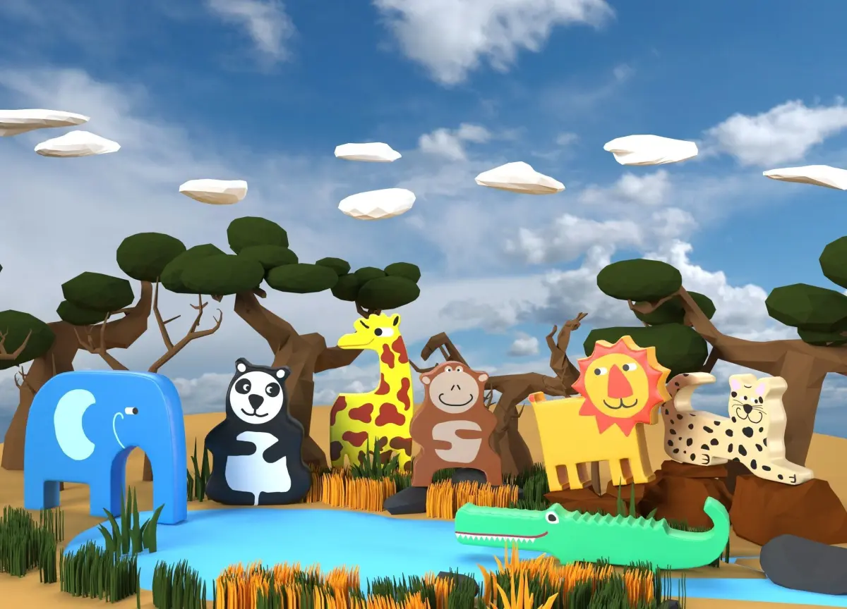 Savannah scene consist of PANDA, MONKEY, ELEPHANT, CROCODILE (ALIGATOR), LION, CAT and GIRAFFE plus other things as a background with the intention to create savanna climate. The idea of creating it came to me right after buying these animals as a wooden toy for my niece:)Scene was creating in BLENDER 2.90 / 2.90.1 so there is .BLEND file. .FBX and .OBJ are also included as well as MAX with .fbx imported to make v-ray renders.Animals were handpainted in SubstancePainter. Rendered in CYCLES, VRAY and marmoset toolbag.All animals have 14k polys and verts.