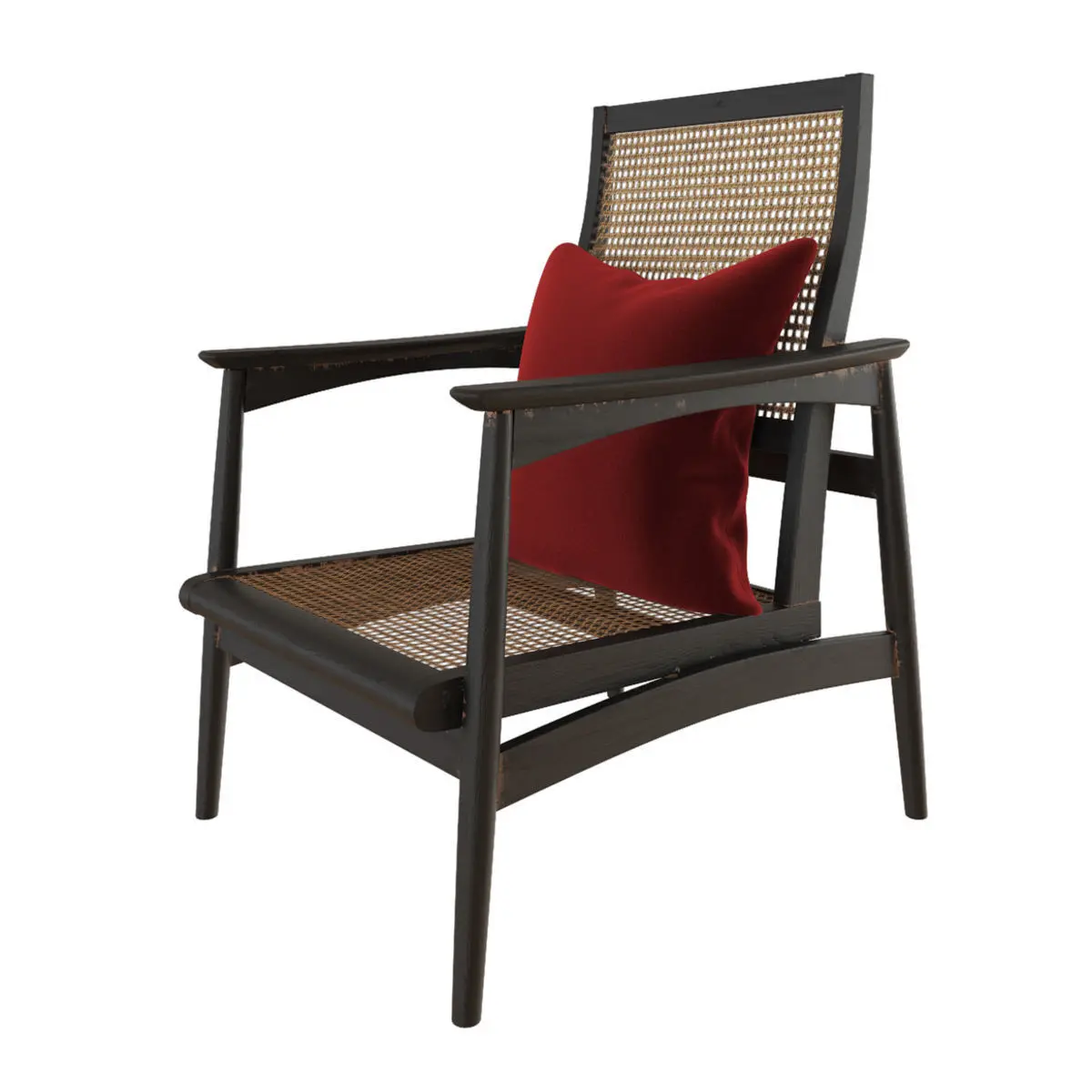 Antique wooden armchair with red pillow.width ; 28depth ; 32height ; 42"