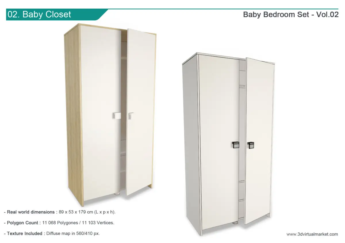 2/. Baby Closet : L.89 x H.179 x P.53 cms. 11 068 polygons / 11 103 vertices.