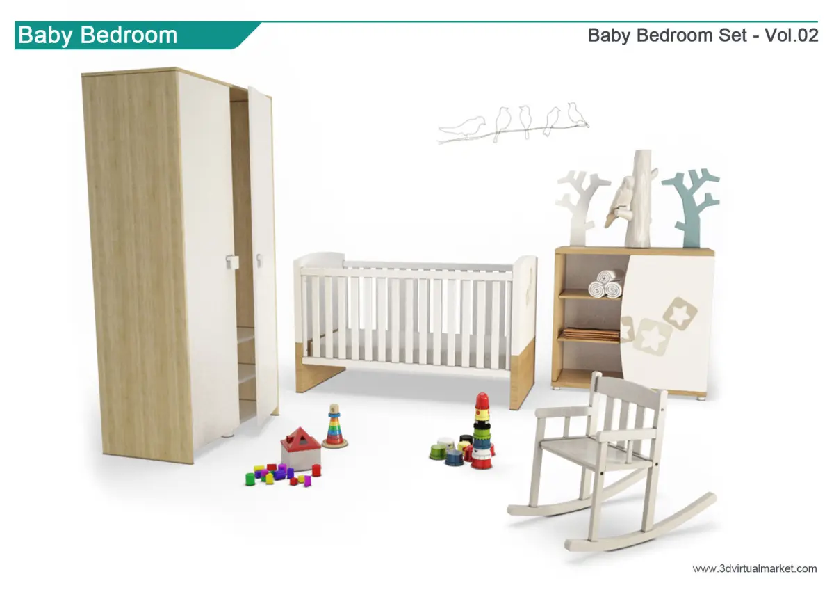 Baby Bedroom Set 3d Models include 10 3d models on the childhood theme.