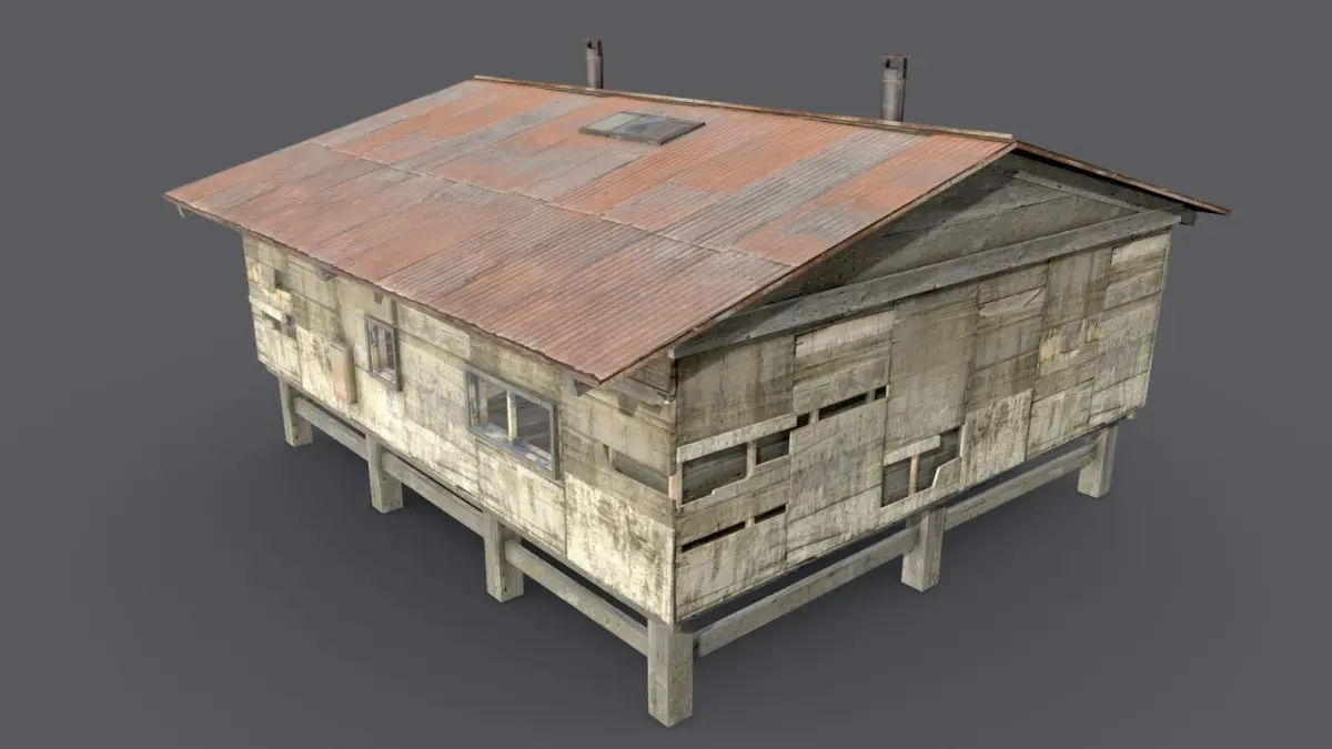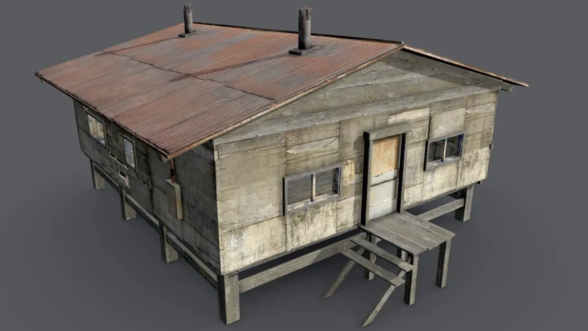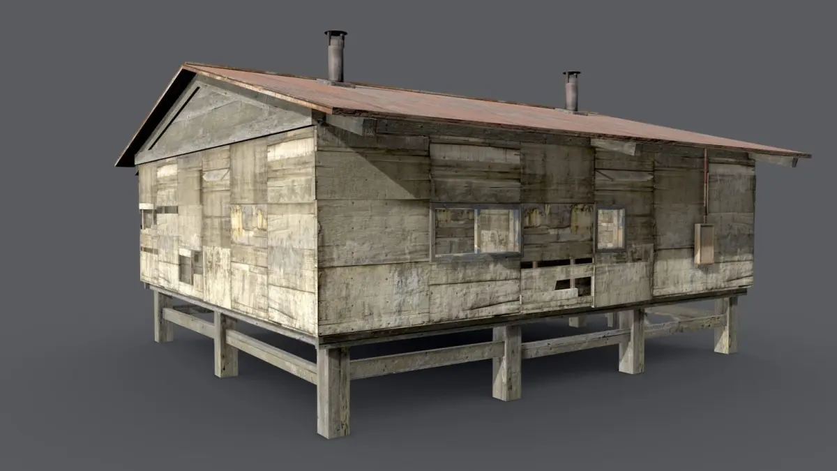 Wooden barrack - game ready Low-poly 3D model