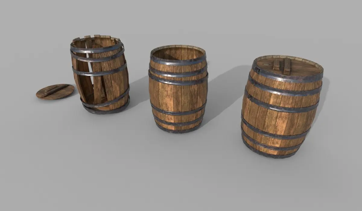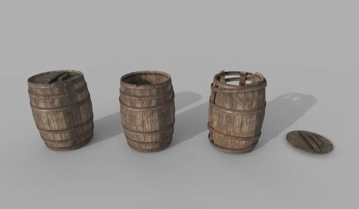 Low poly Barrels set with 4 barrel mesh variations and 2 variations of 6 textures, an old worn rusted look, and a newer look. The mesh is optimised for game engines and features: