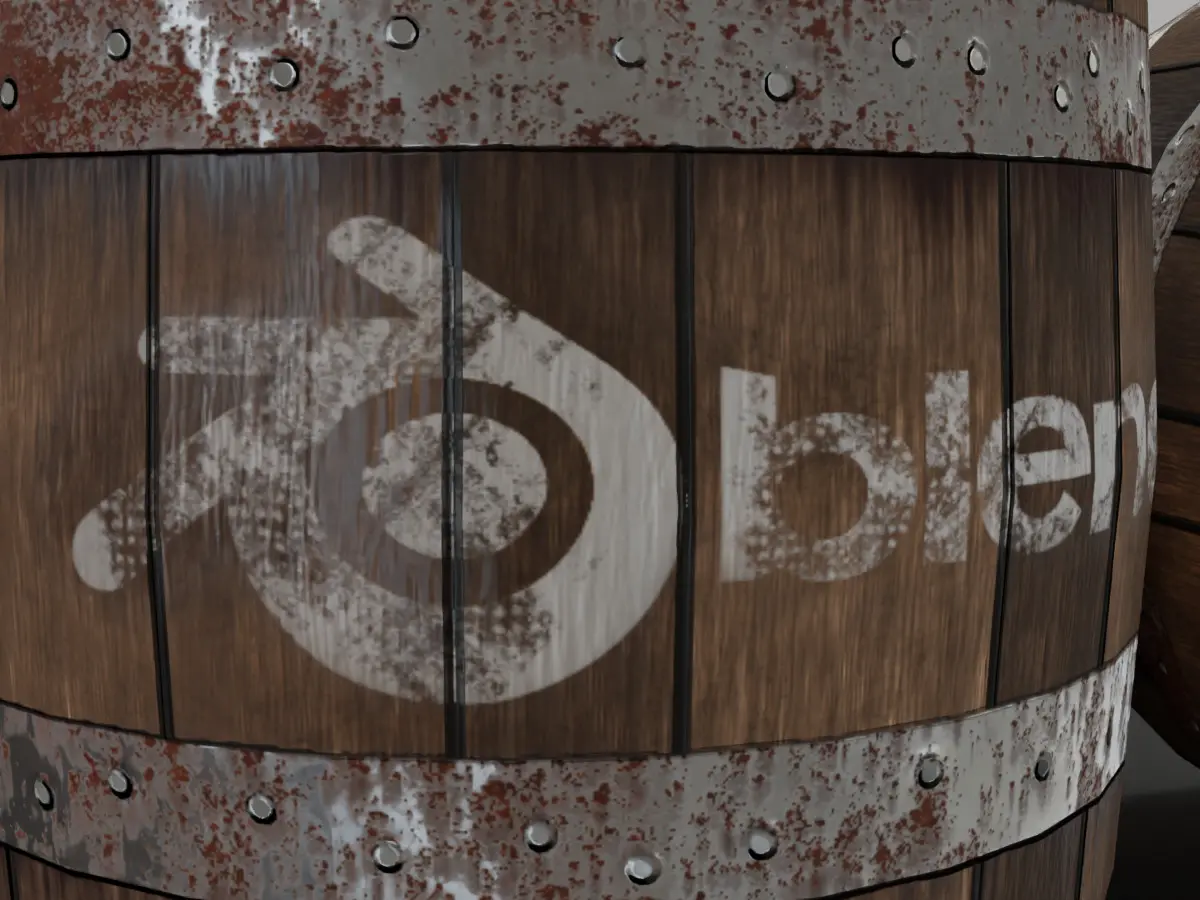 SImple low-poly wooden barrel with rusty metal rims.