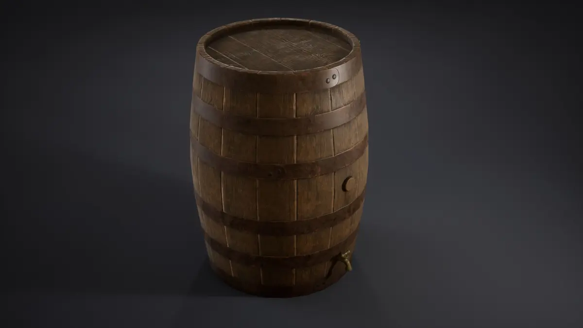 Wooden Barrel with Tap - PBR gameready model of a used wooden barrel with tap.