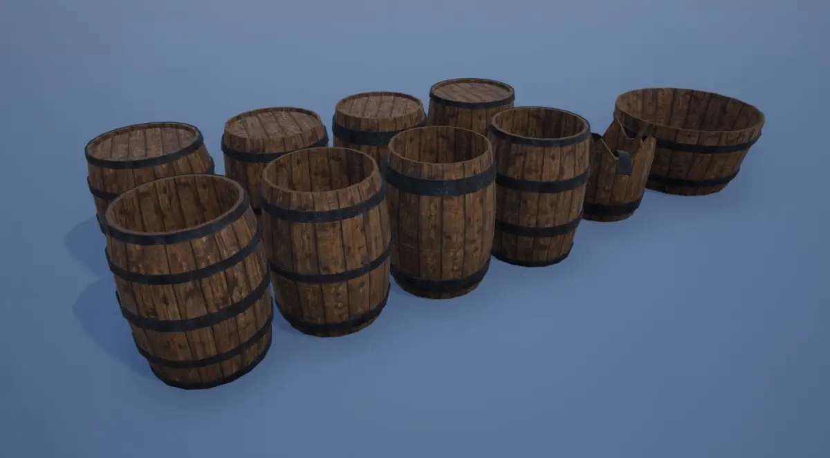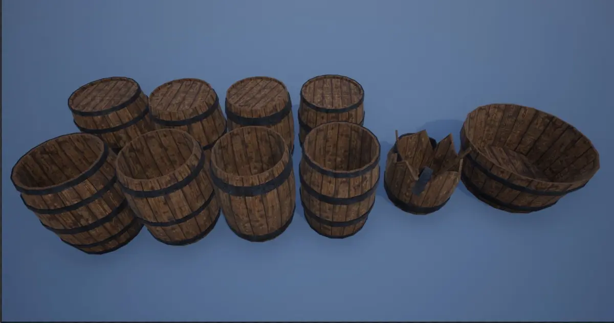 - Wooden Barrel Broken : 284 polys, 596 tris, 310 verts