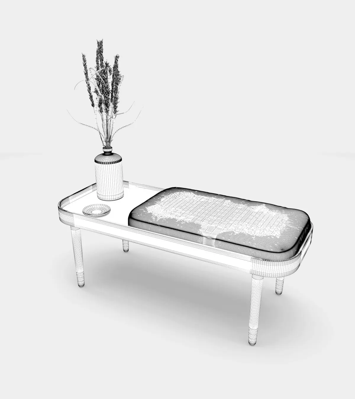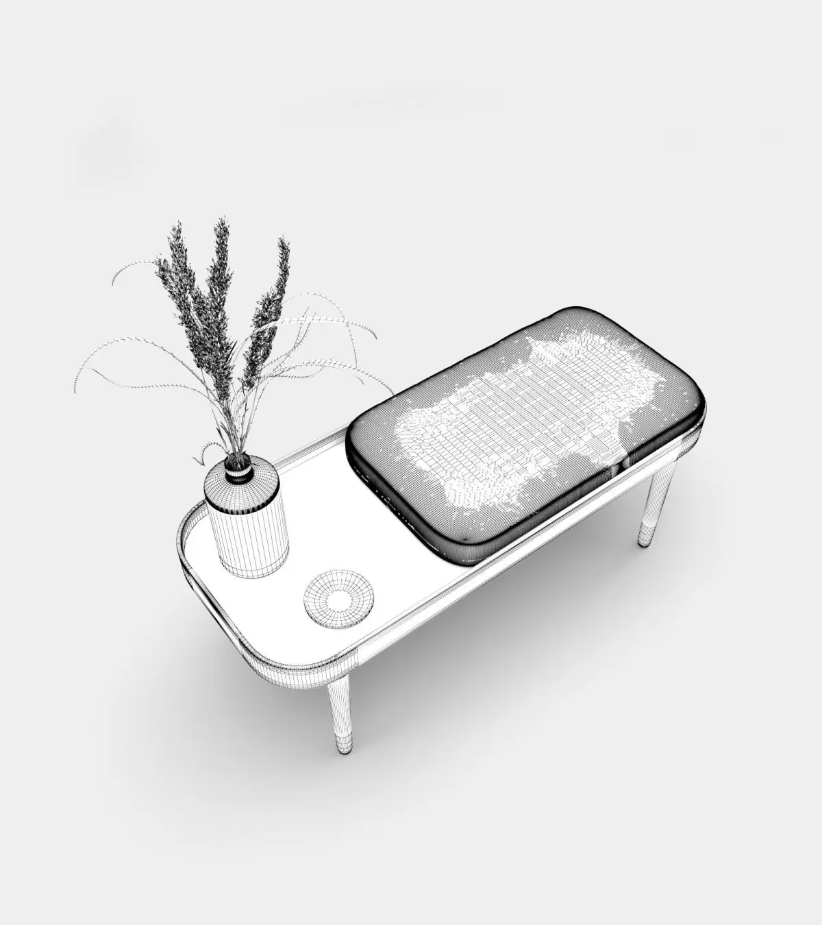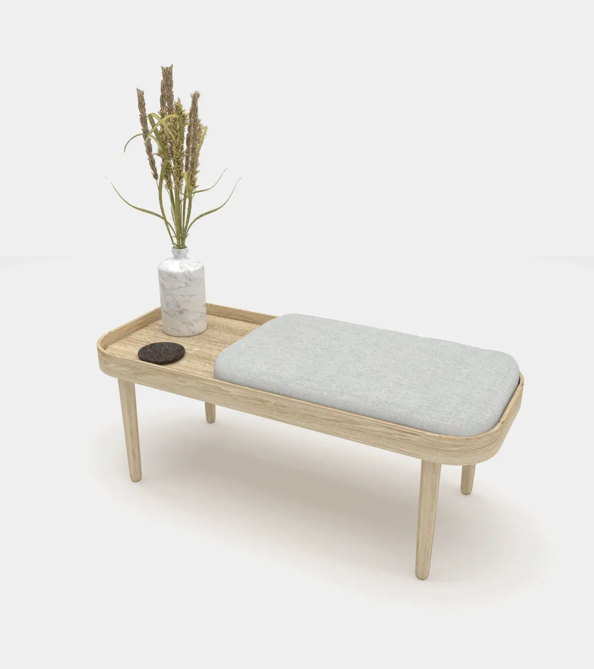 Photorealistic 3d wooden bench with accessories for indoor design