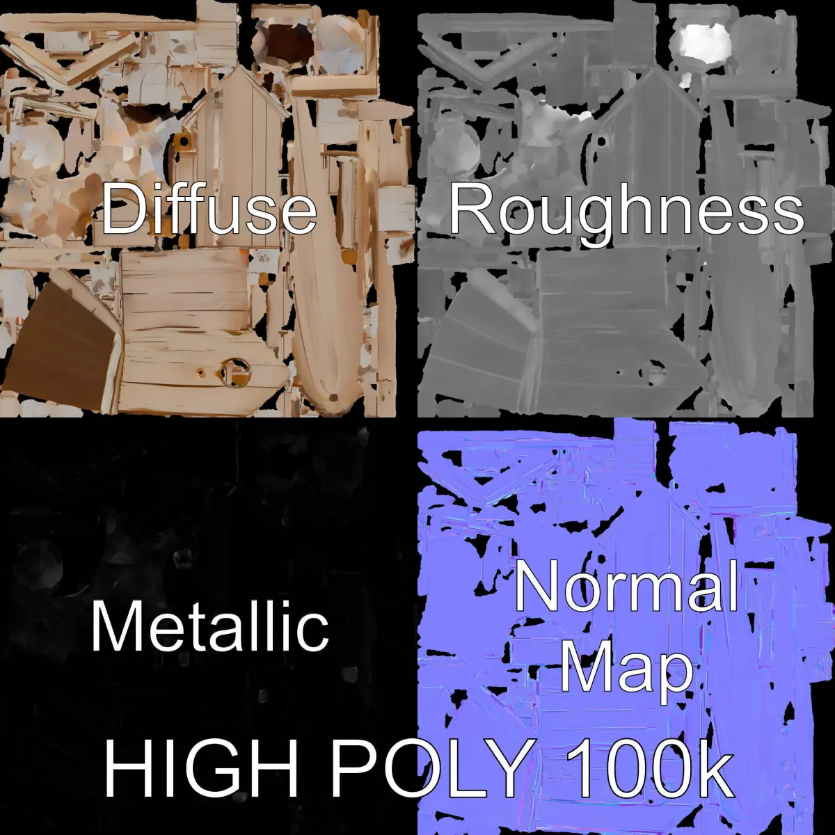 This Wooden Birdhouse Model Pack offers three levels of detail suitable for various applications, including mobile, environment, and production rendering. The model's textures are high-quality PBR, Diffuse, NormalMap, and reflection/roughness/metallic, which are compatible with modern rendering engines like 3ds Max, Maya, Cinema 4D, Blender, Vray/Corona/Cycles, and game engines like Unity and Unreal. The birdhouse model is ideal for use in outdoor scenes, architectural visualizations, and interactive presentations. Textures are sized at 4096x4096 and the model is accurately unwrapped with no overlapping UVs. Please like and comment if you enjoy this model. The first image is the reference used for creating the 3D model. It is important to carefully evaluate the quality of the model by examining the preview images that display the topology and polygonal mesh. These previews (WIRE and WEB 3D Preview) clearly demonstrate how accurately the model matches the original reference and how well the geometry has been executed.