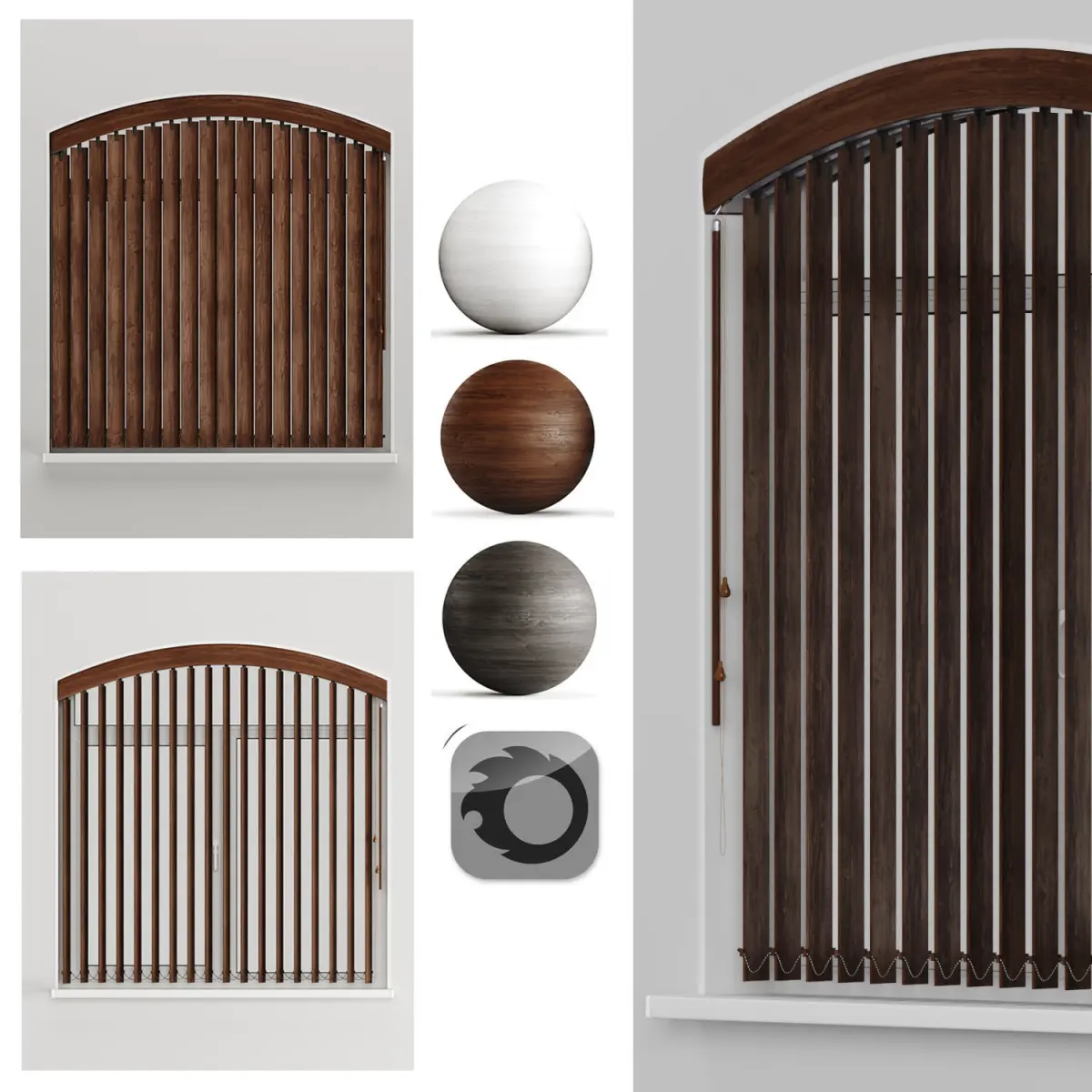 The archive contains all three color schemes of the model, configured and ready for rendering, as well as an arched windowThe model did not use third-party plugins