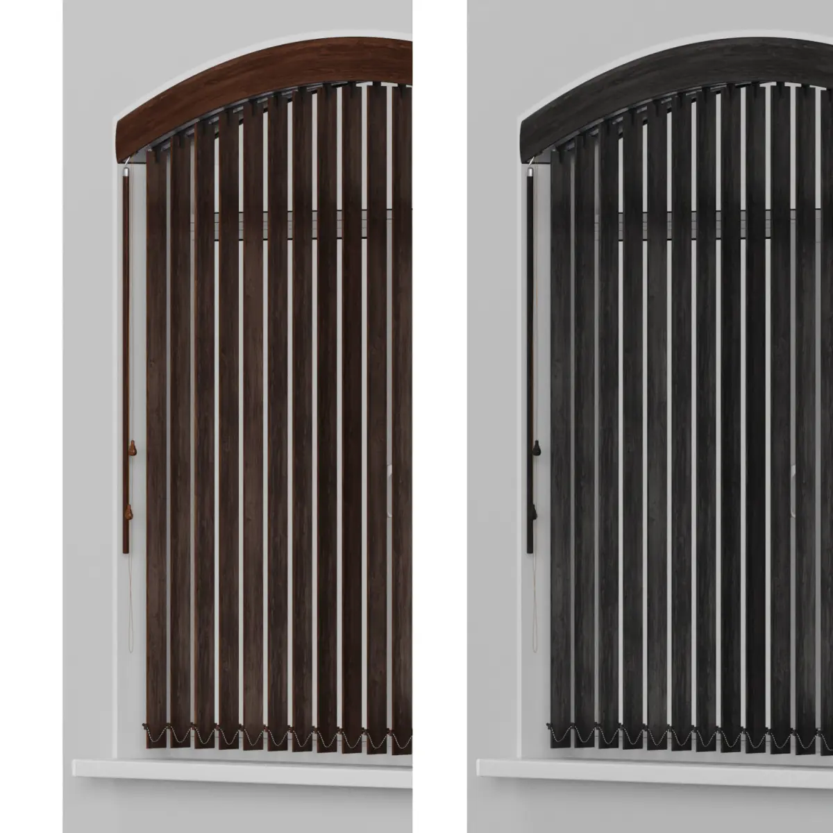 Wooden blinds and arched window