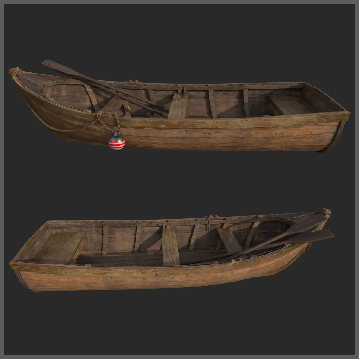 Boat done in maya and textured in substance painter. Pbr workflow with high quality textures and all textures in 4096. Even meshes..obj format: Textures may have to be added manualy. Rar archive contains two versions of model with simple materials: 1. Exported without collapsing after mesh smooth. Low or med poly mesh which you can see in preview images, good if you need to edit model. 2. Exported after appllying mesh smooth. Just import, apply materials and render. Low or med poly mesh which you can see in preview images, good if you need to edit model. Simple materials. .fbx and .ma: Textures may have to be added manualy Rar archive contains model exported after appllying mesh smooth. Just import, apply materials and render.