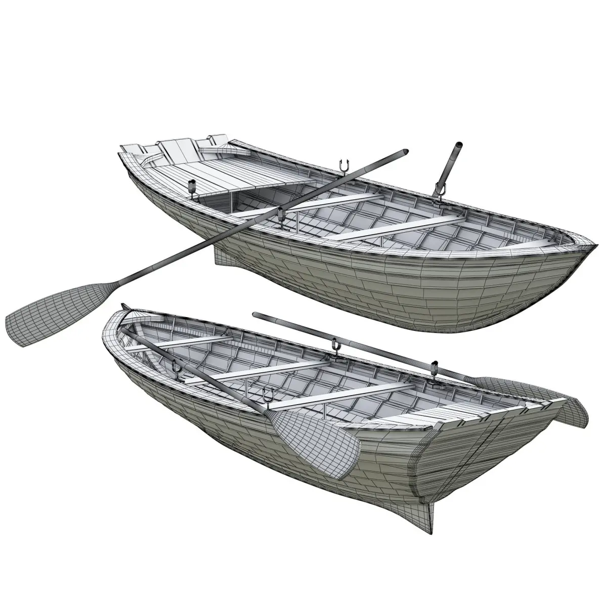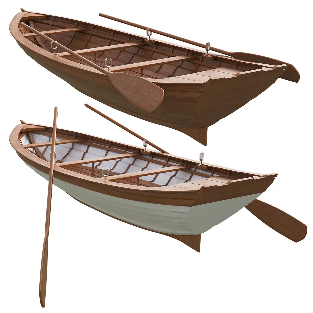 Wooden boats with oars 2 colors