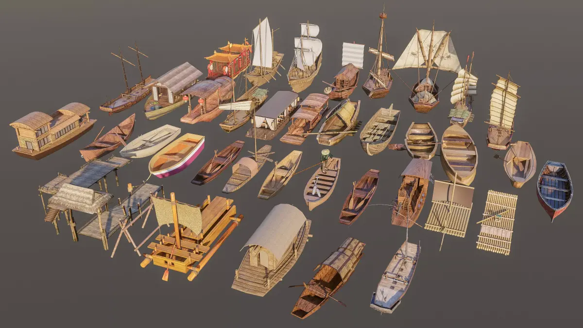 Wooden boat collection 1 Low-poly 3D model