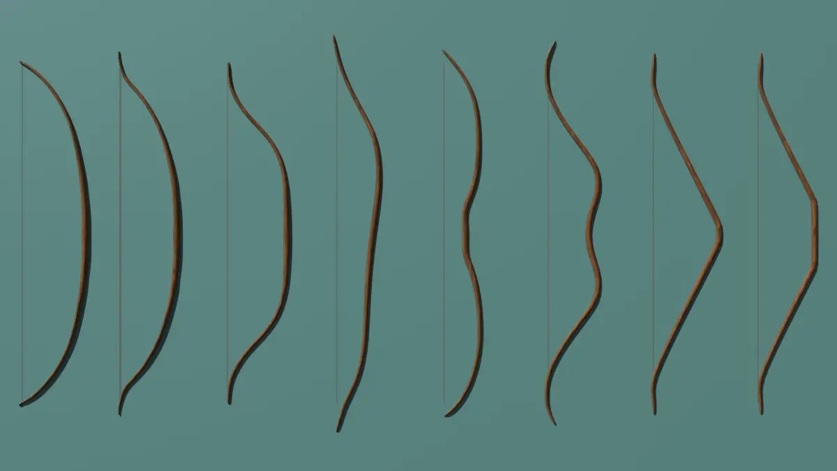 a collection of 8 high quality rigged and animated different bows lowpoly and game ready suitable for lowpoly and highpoly survival games 1500 - 2700 triangles 1k and 2k textures 1.6 - 1.9 miters every bow is animated with 2 different actions, one for the draw and one for the release.every bow is in a single file ( 8 files , one for every bow ,containing the textures and .obj, fbx and x3d i can share some more files if you would like to, you can also find the blend file for every bow with the animation.