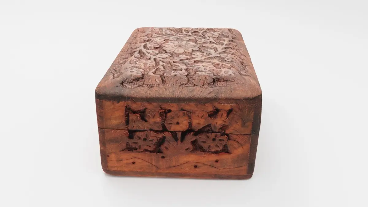 Wooden box with engraving or wood carvingThis is an optimized 3D model with baked normal and other maps from 3D scan. Perfect for GPU rendering, use in Real-time engines, games etc.The resolution for each map is 4096x4096. You may find a source 3D scan model in our products list.Please check our other products and make sure you didn't miss collections and assets with similar type of objects to get better price offer with buying them as a collection.