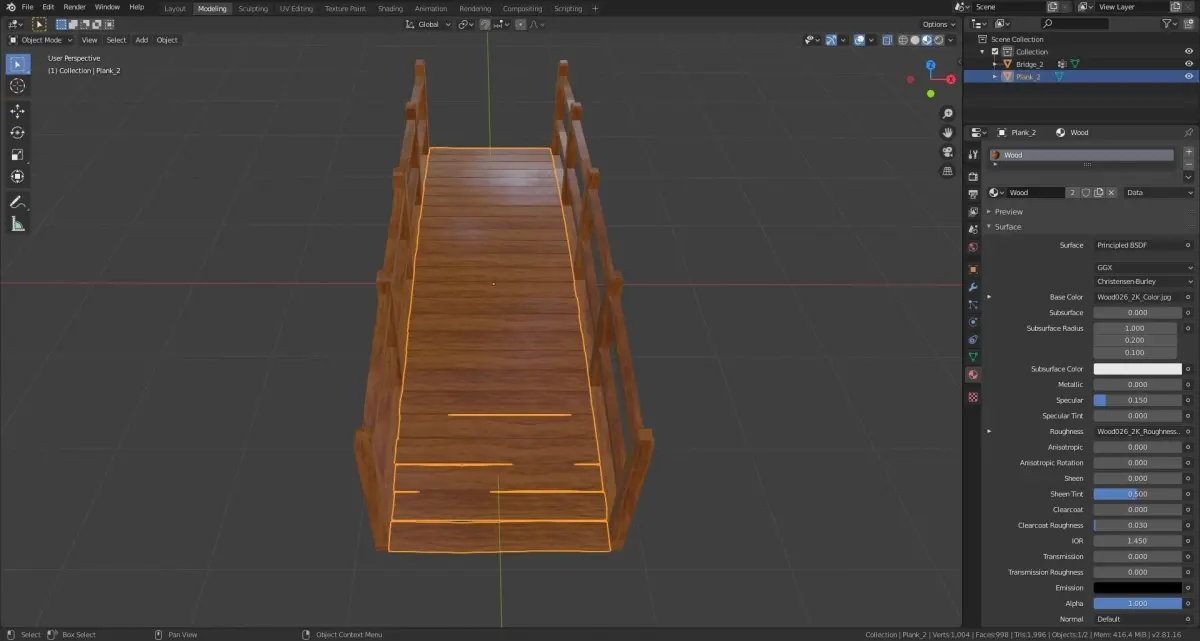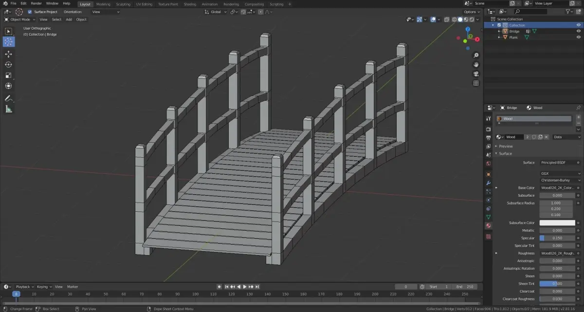 Two different bridges with simply and more complicated planks. The package also contains parts, so you can build your own bridge. Important - the package contains cc0 texture from cc0textures.com - it exists to show that the model is ready to apply the material. I encourage you to find any texture you want and then apply to an object - it should nicely works. I personally prefer not textured, solid materials.