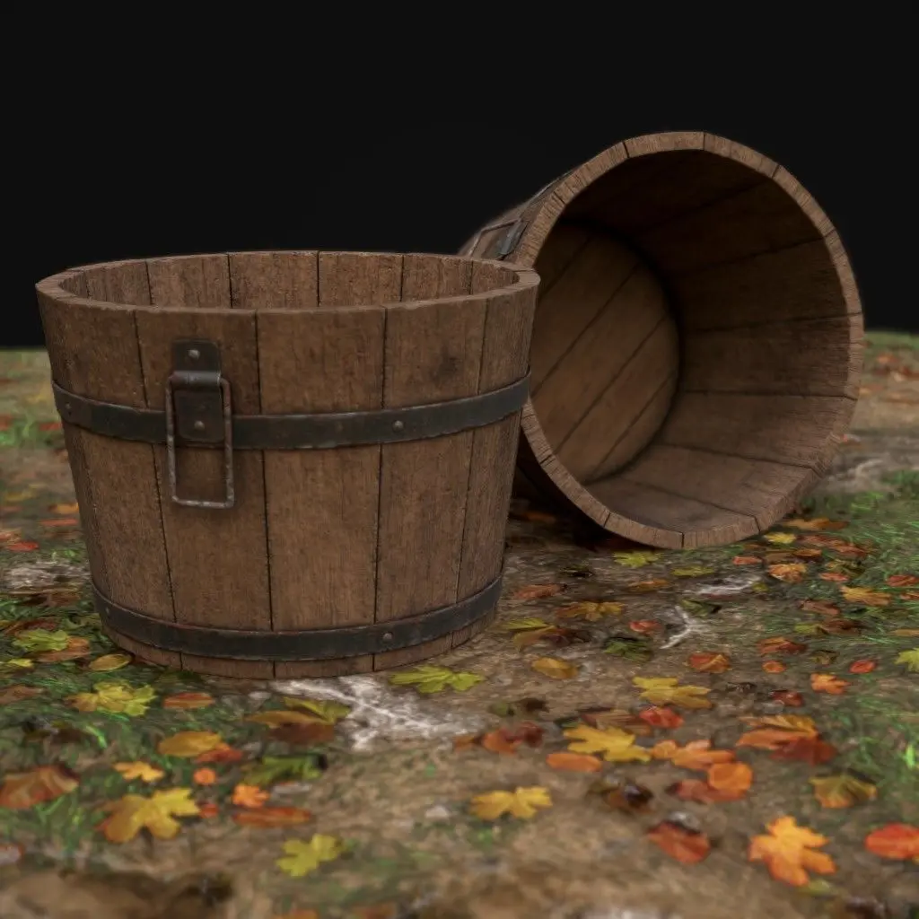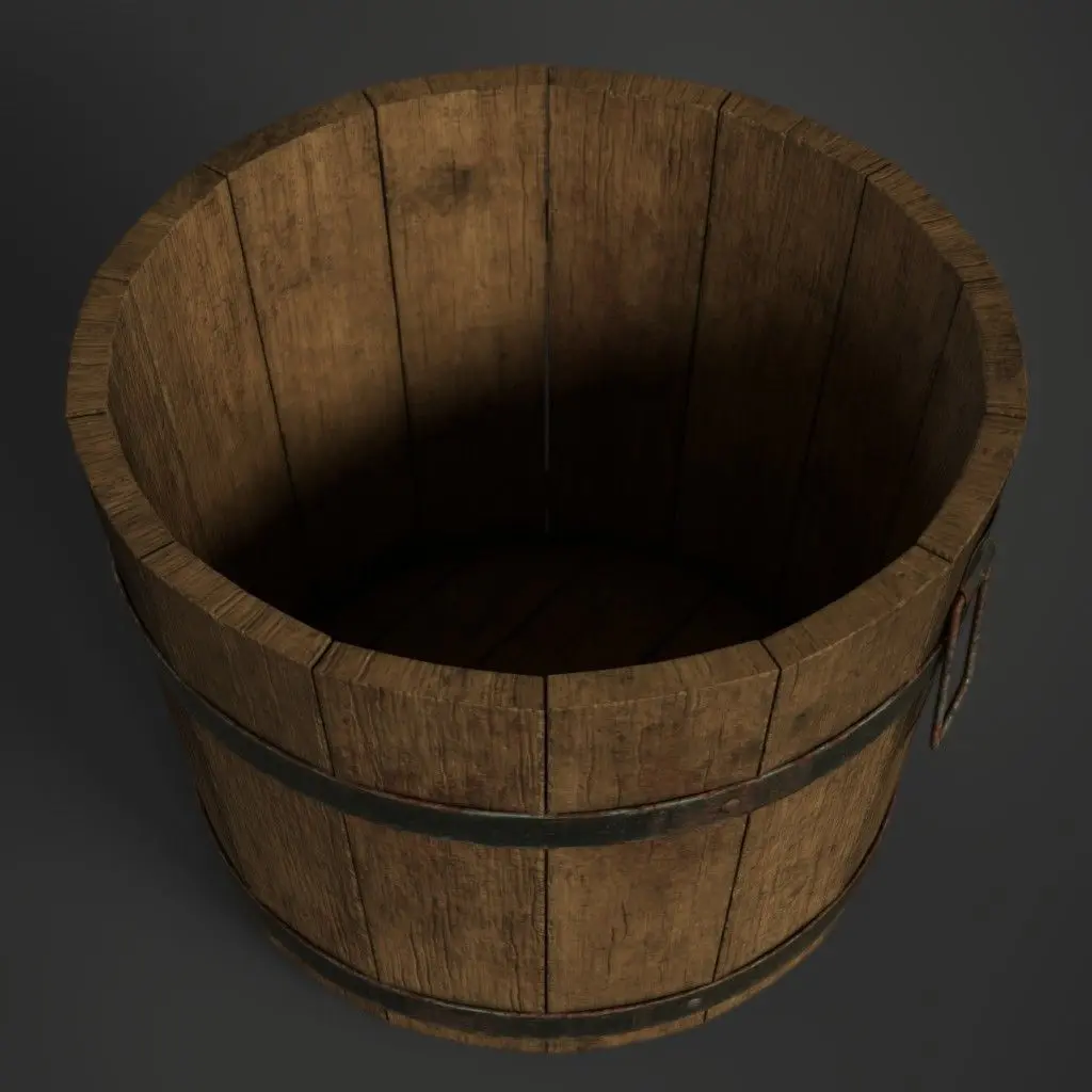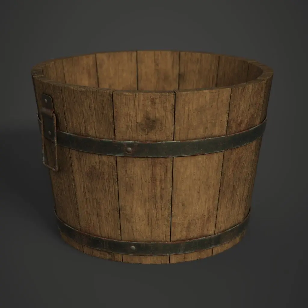 Bucket Height: 42cmBottom Diameter: 44cmTexture Size: 2048 x 2048