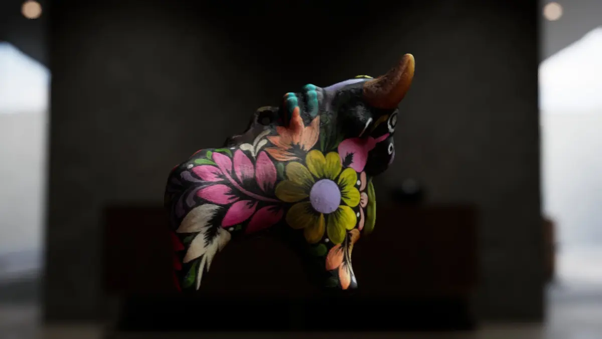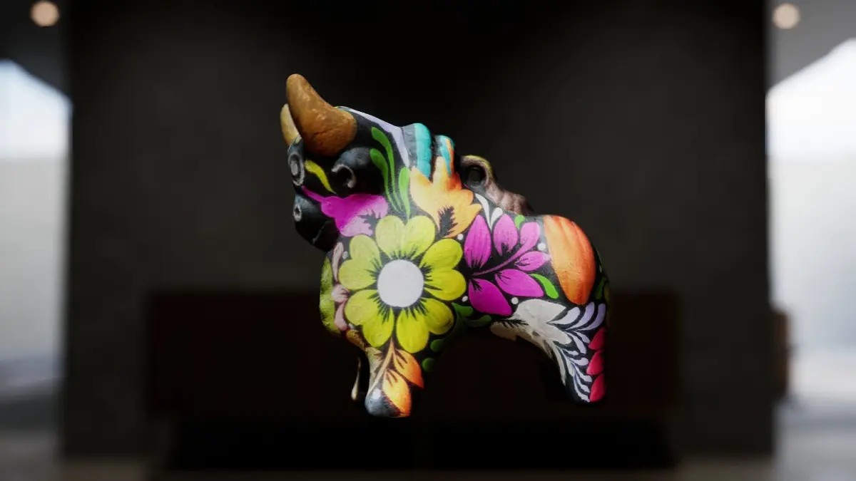 This 3D model features a wooden bull designed as a small house ornament. The model comes in two levels of detail with 260,000 and 15,000 vertices, making it versatile for various rendering needs.