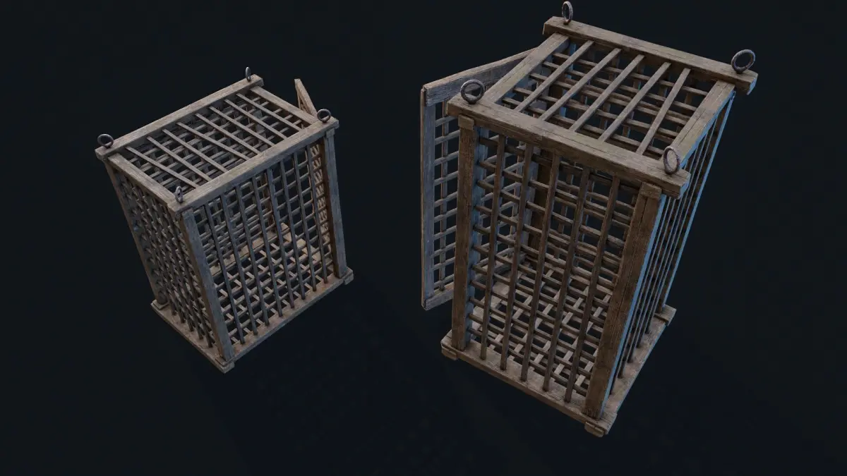 The Medieval Wooden Prisoner Cages pack includes several cage variations—ground, hanging, and elevated—crafted in a realistic style with PBR textures and optimized for games and visualizations. Perfect for fantasy, medieval, or post-apocalyptic settings such as camps, dungeons, villages, or execution sites.