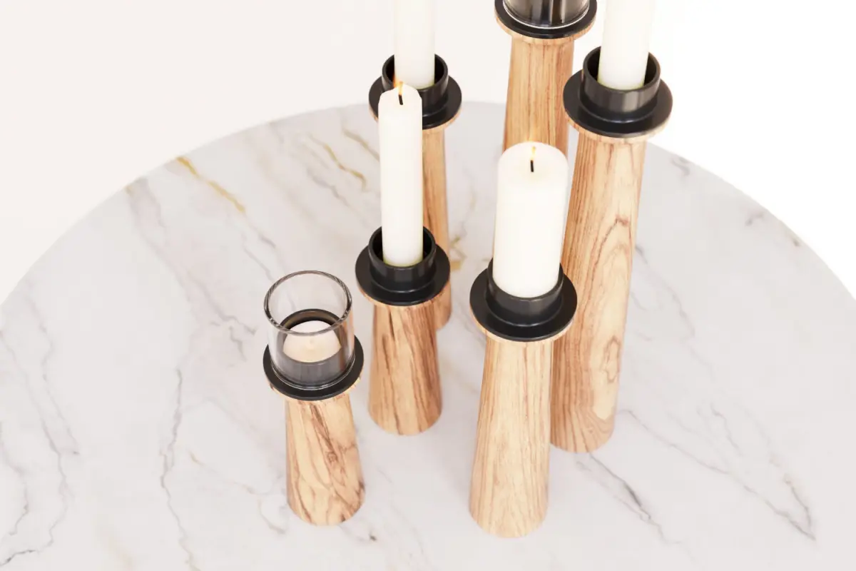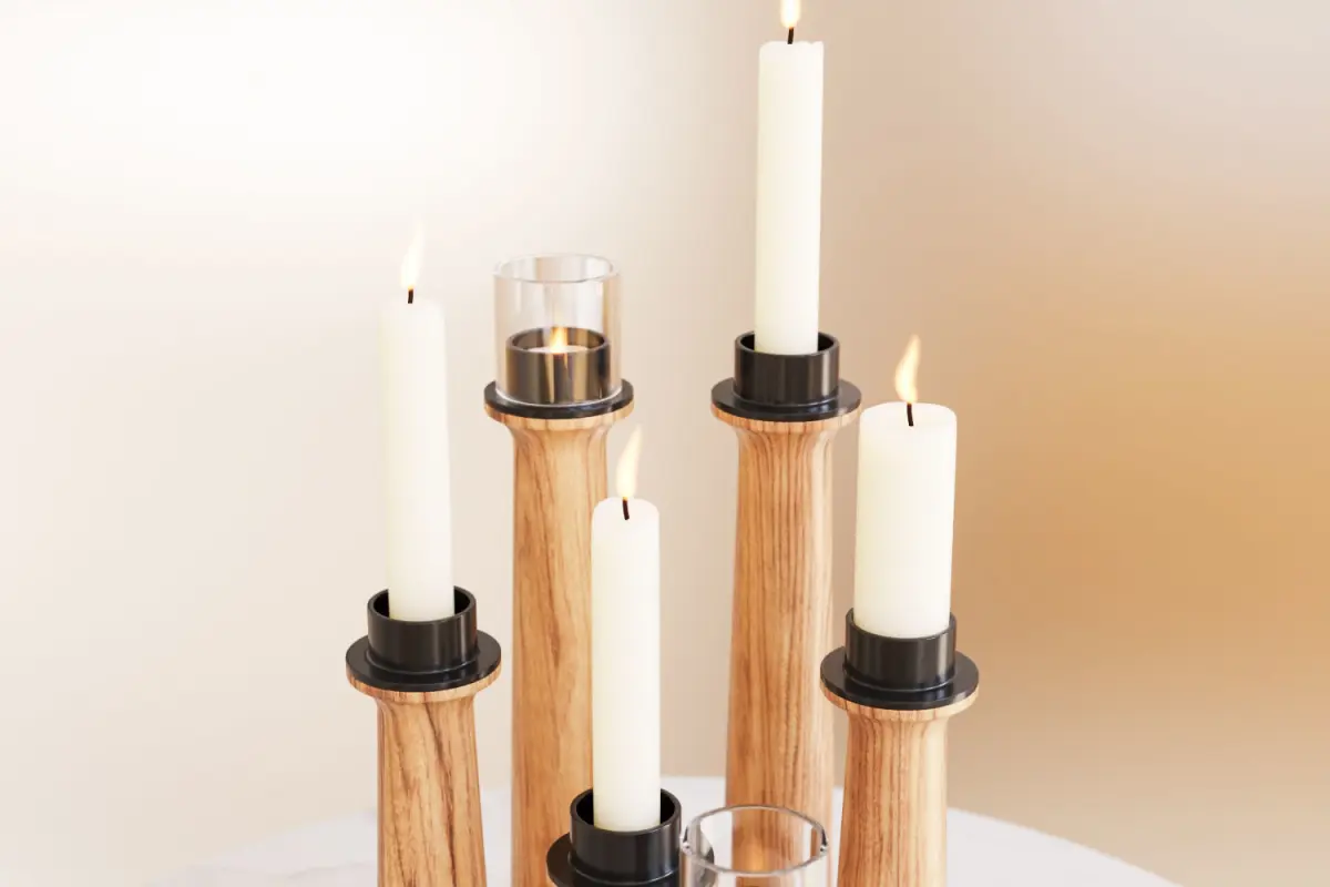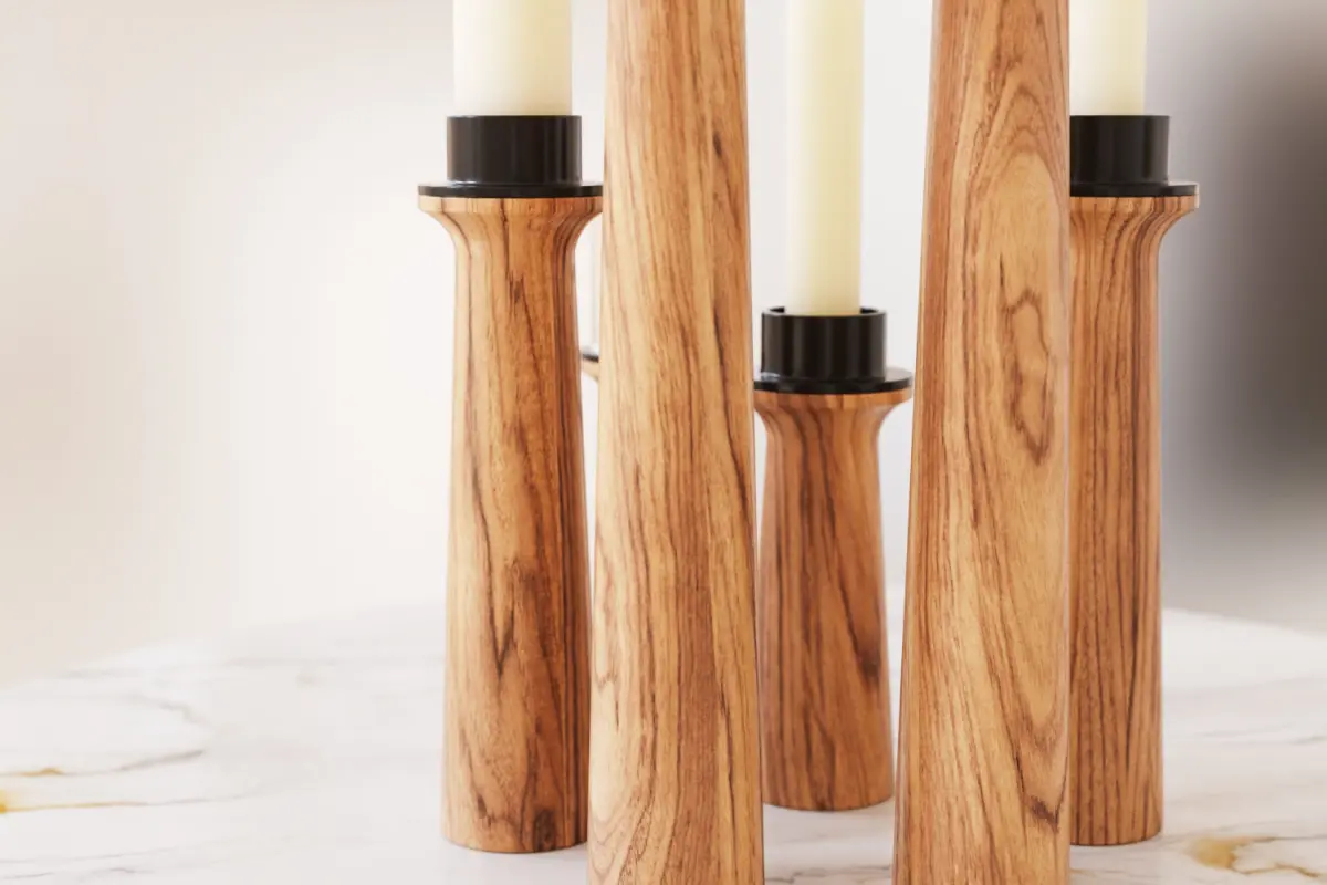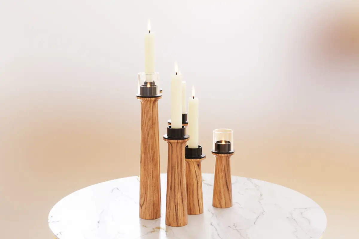 High-quality, photorealistic candle holders made of wood.Model prepared for architectural visualizations inside various 3d software.