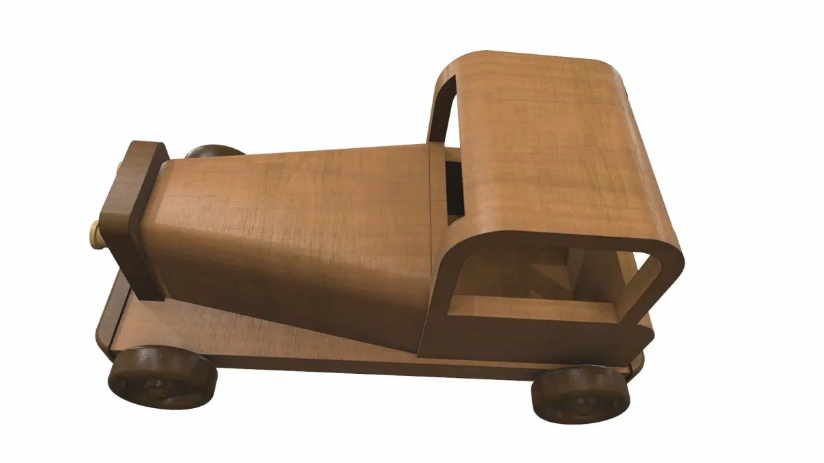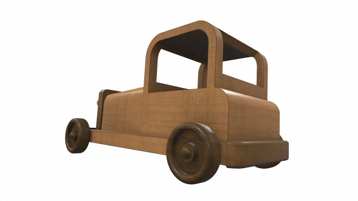 Model wooden car toy retro, which is suitable for interior visualization in combination with other elements.
