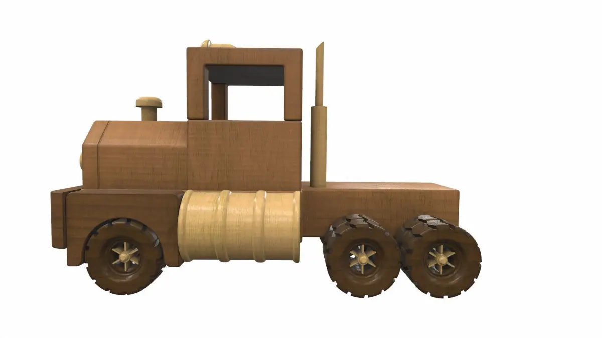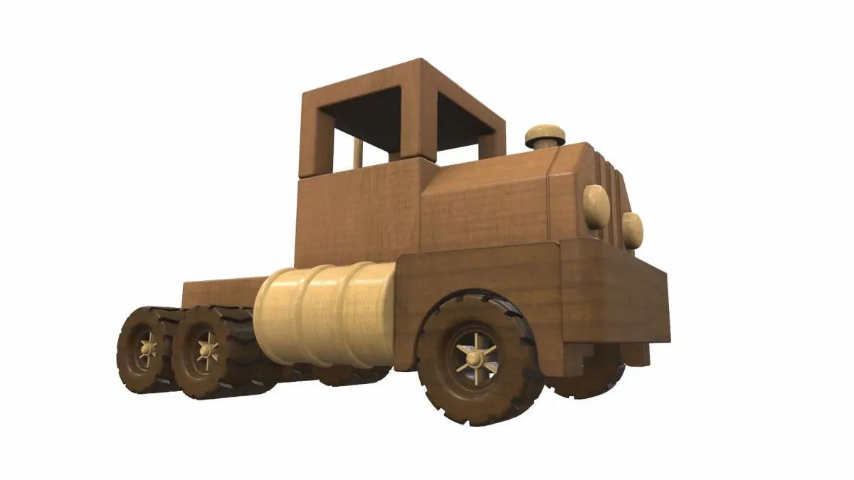 Model wooden car toy truck, which is suitable for interior visualization in combination with other elements.