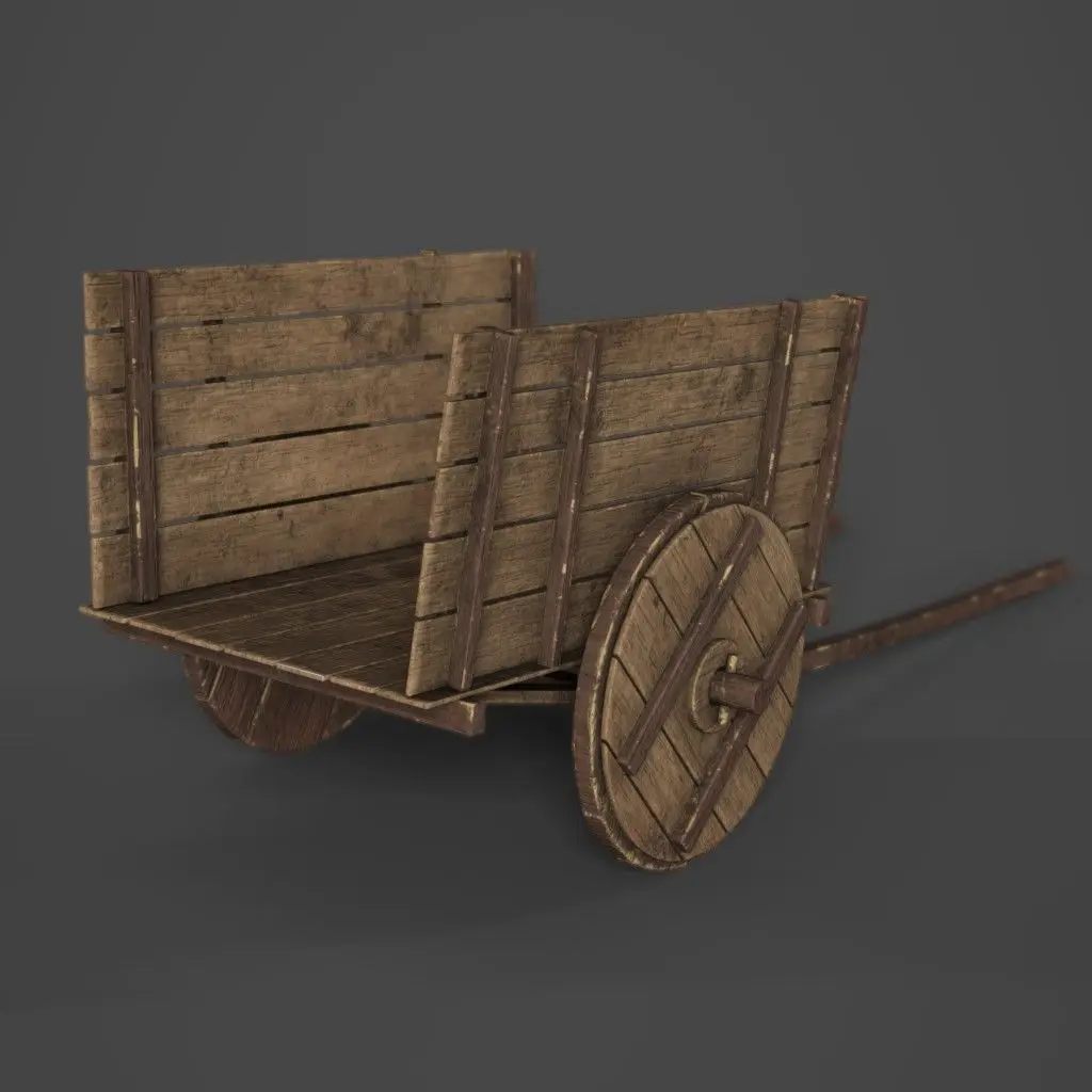 Old wooden wagon made using high to low baking. The wheels and axle are a separate mesh from the main cart to allow a rolling animation